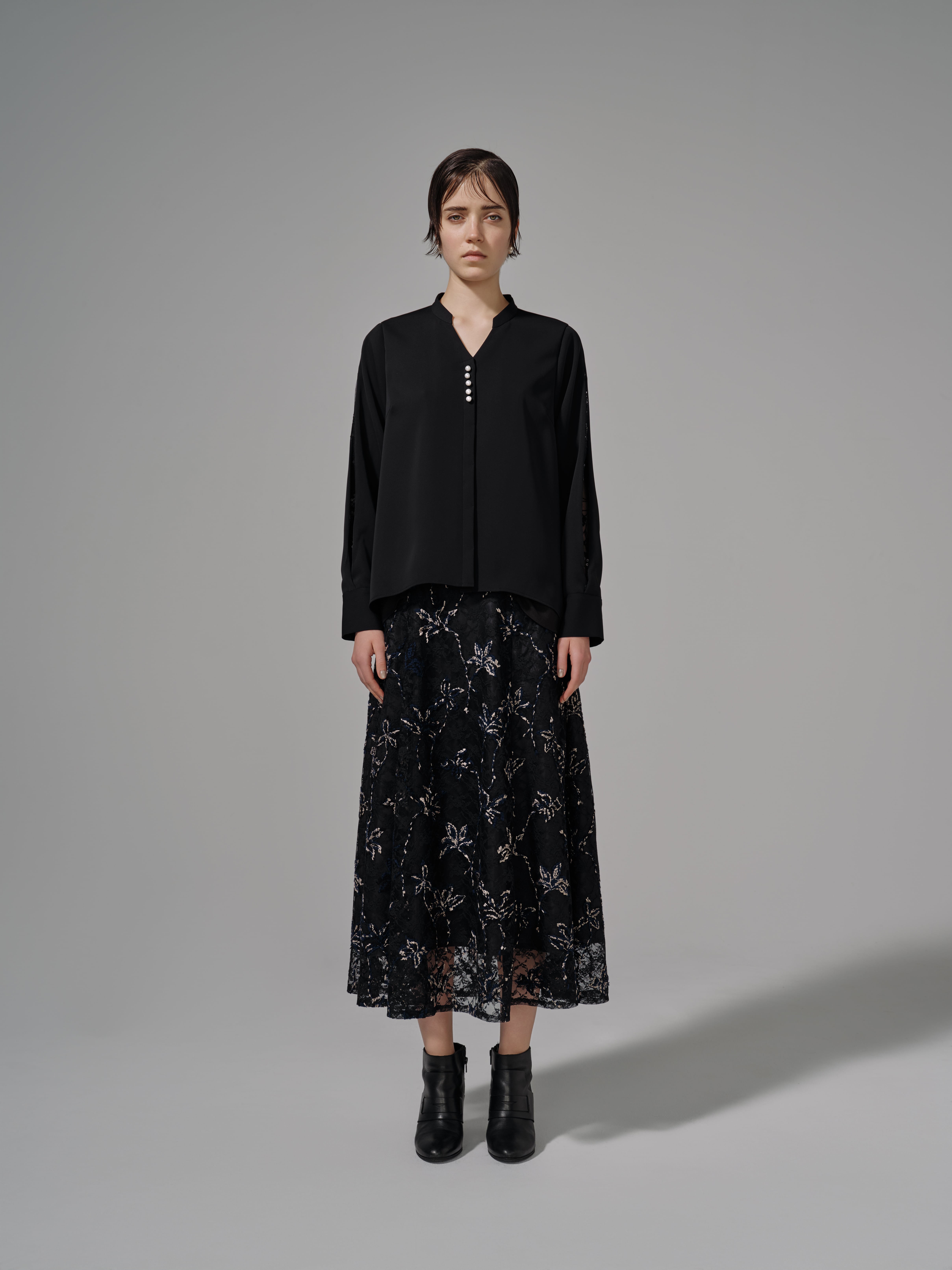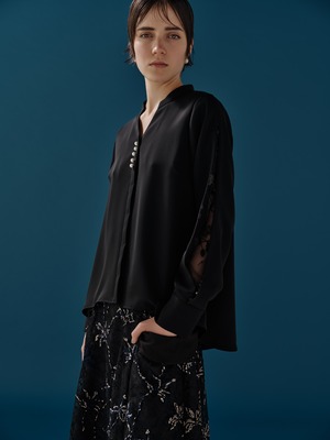 先シーズン人気の高かった「PEARL CAPE BLOUSE」が長袖になって、パワーアップしました。
