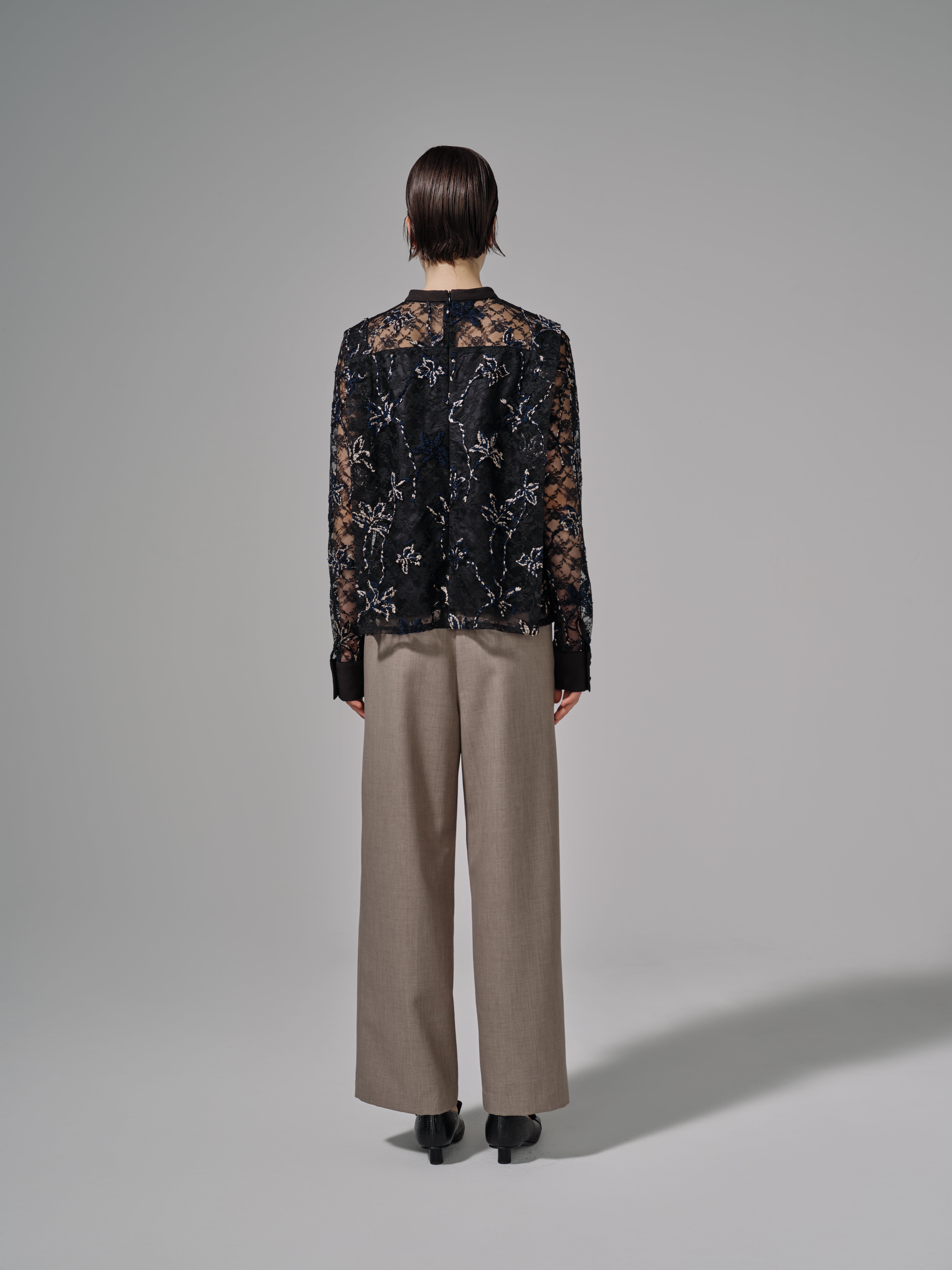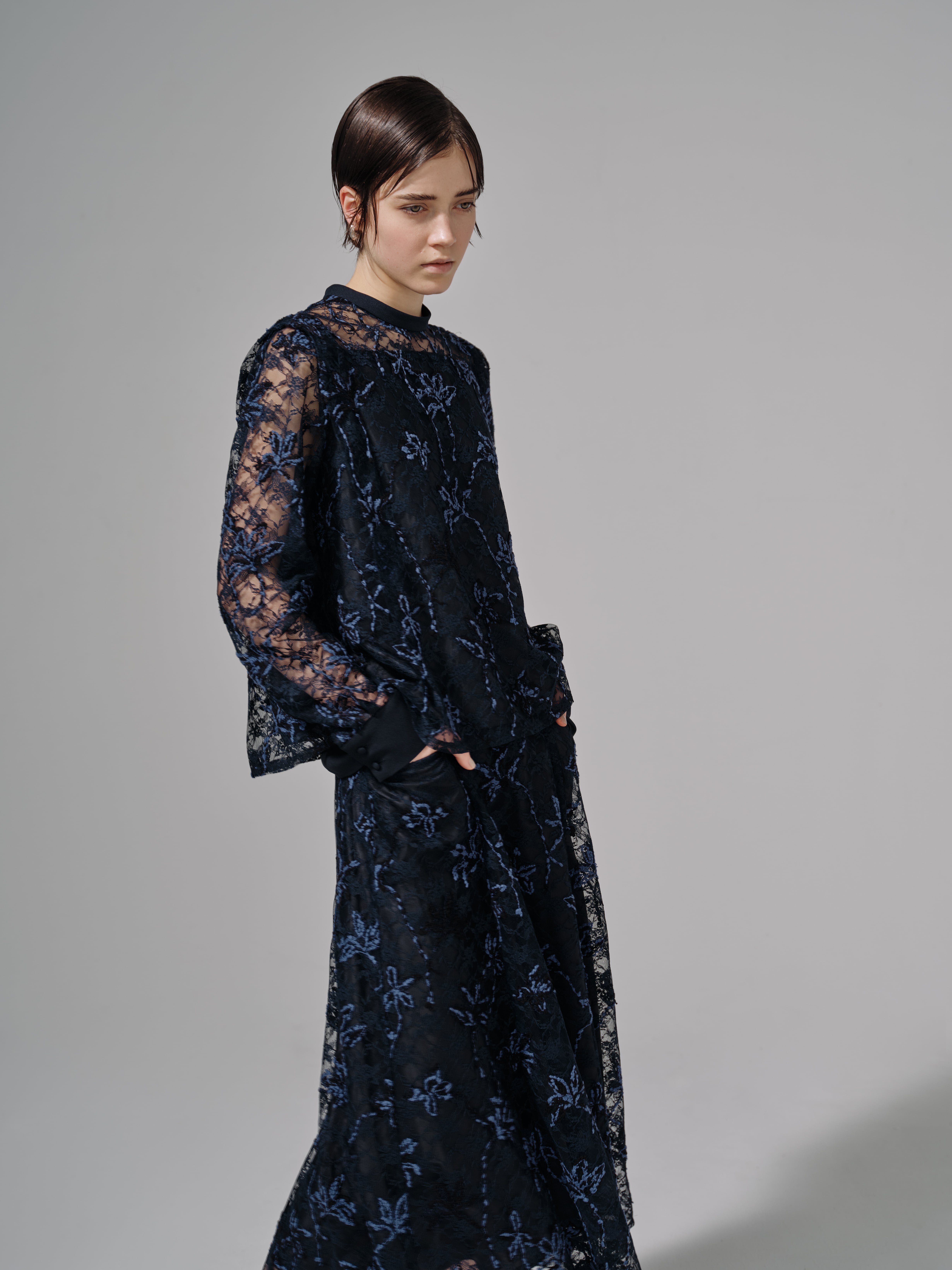 今季のテーマ「POST CLASSICAL」からインスピレーションを得たオリジナルレースを贅沢に使ったブラウス。