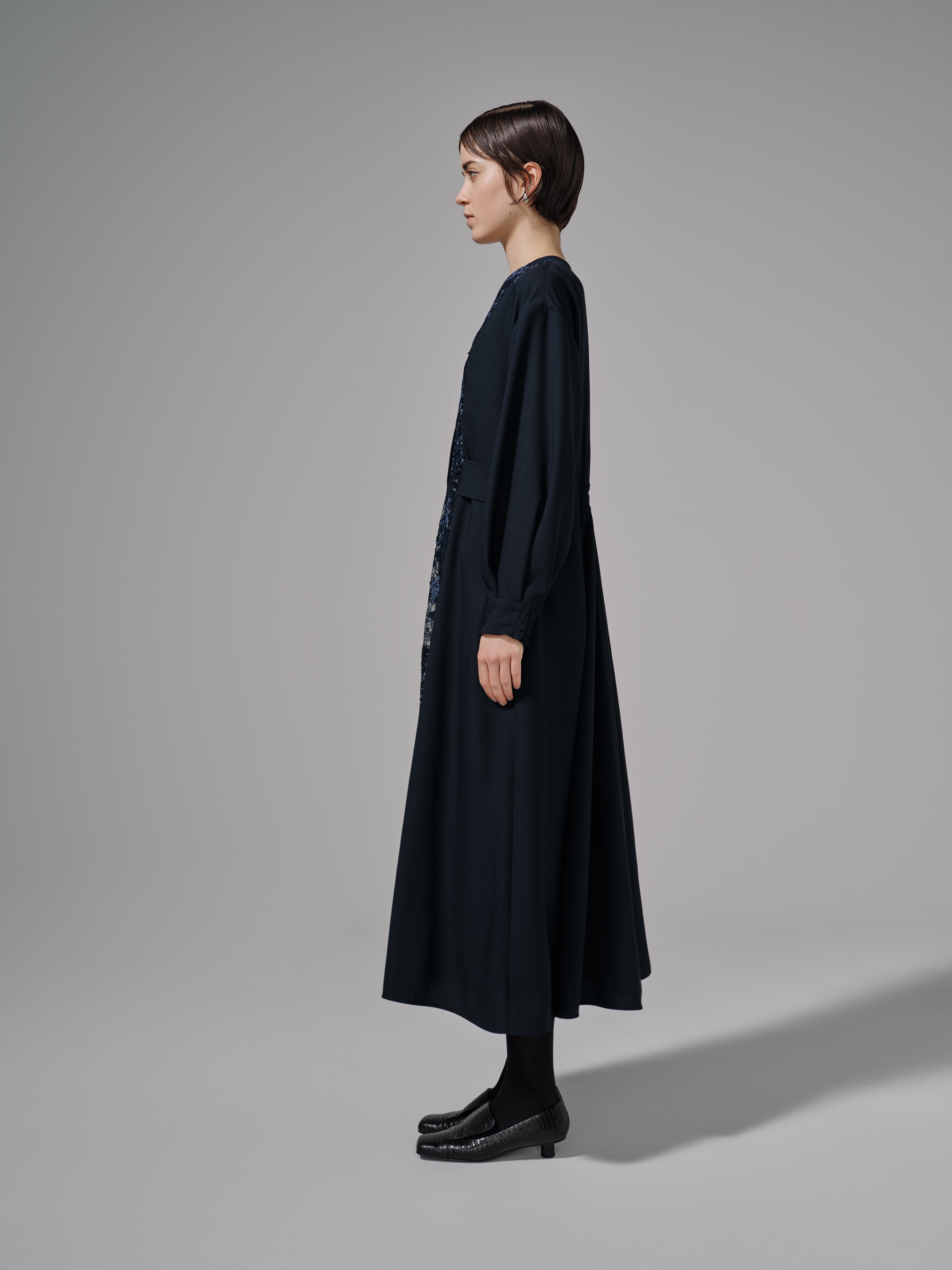 オリジナルレースとジョーゼット素材を組み合わせた、表情豊かなワンピース。