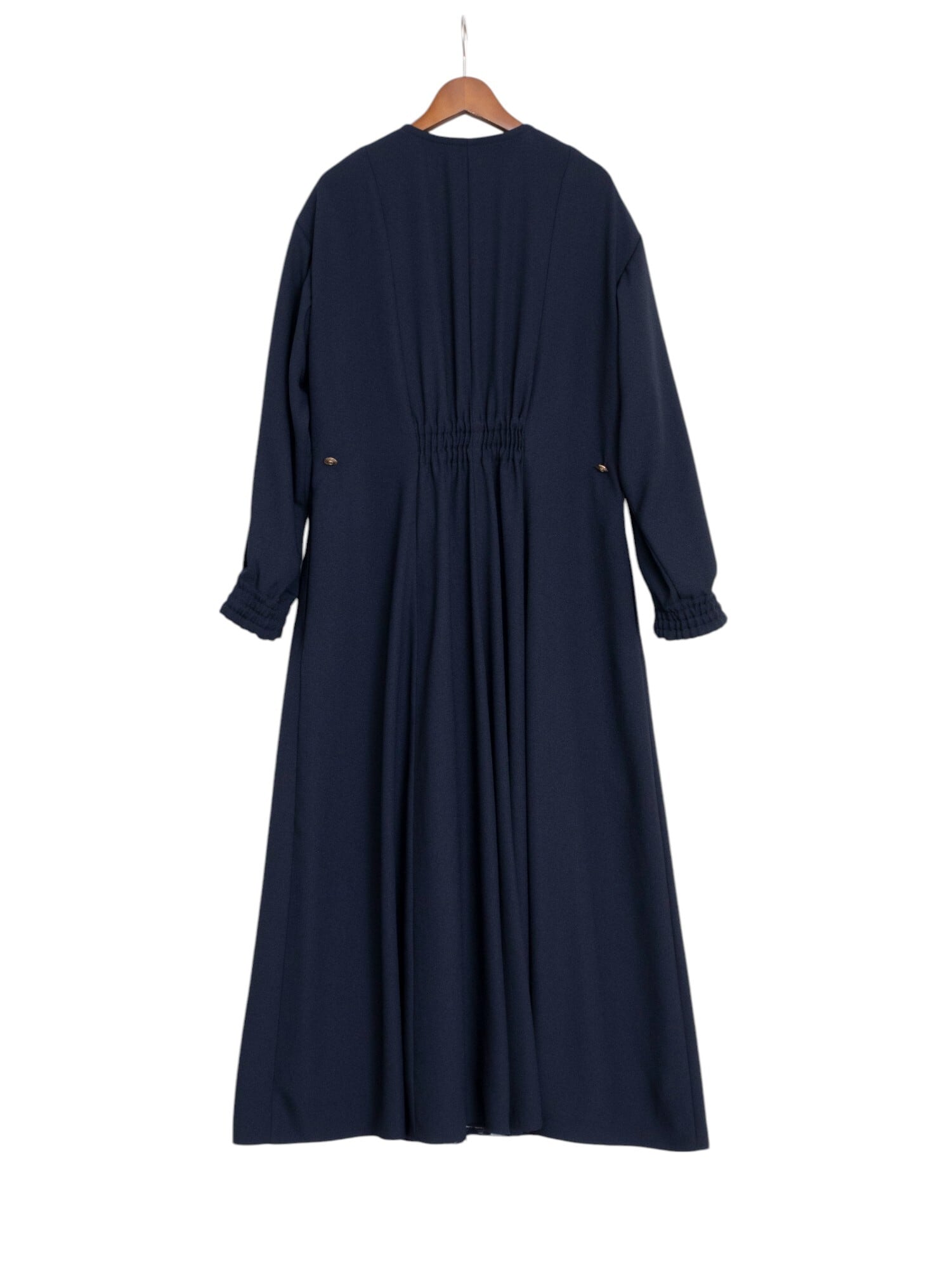 サイドウエストのゴールドボタンは、二段階で調節が可能。シルエットの変化をお楽しみいただけます。