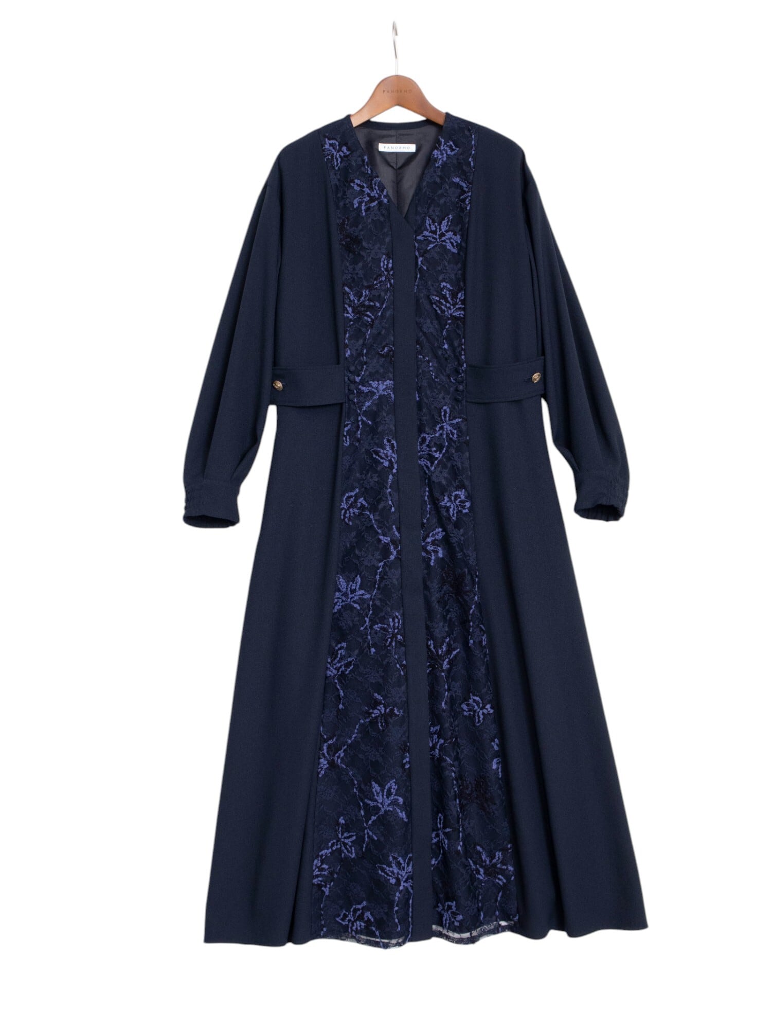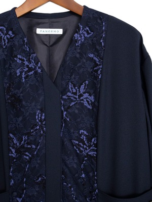 今季のテーマ「POST CLASSICAL」からイメージした「twilight(夕暮れ)」に浮き上がる花を表現したオリジナルレースを際立たせる、計算されたドッキングデザイン。