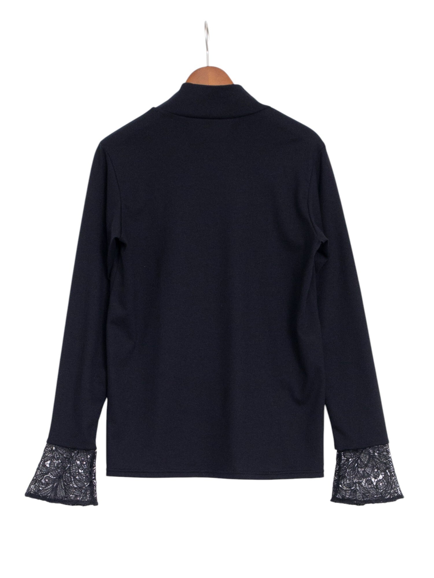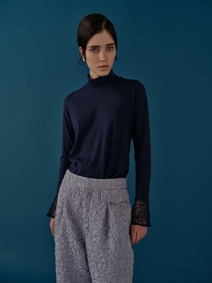 袖口は、スパンコールを施した繊細なレースに切り替えてベルスリーブのように少し広がったシルエットに。