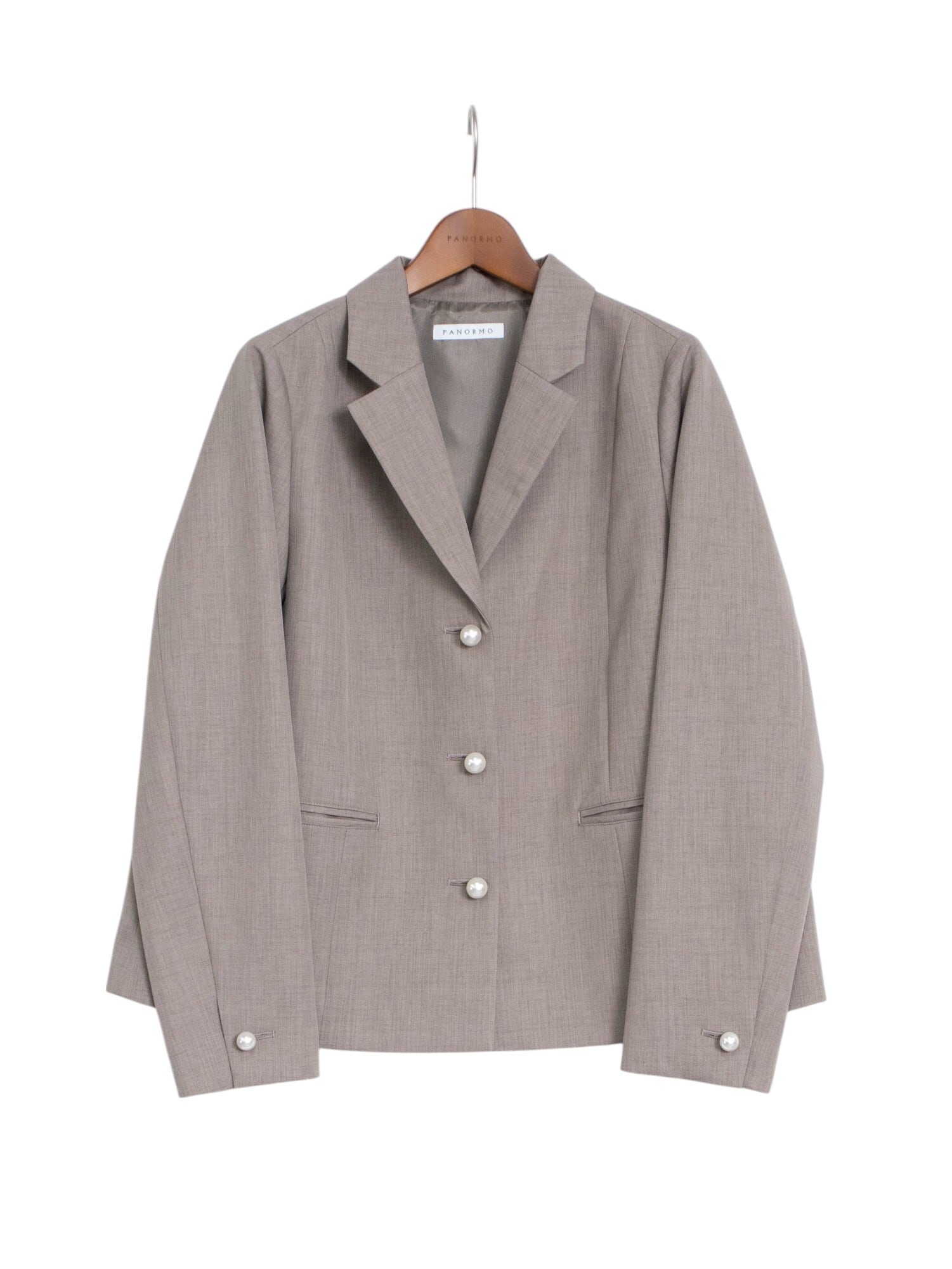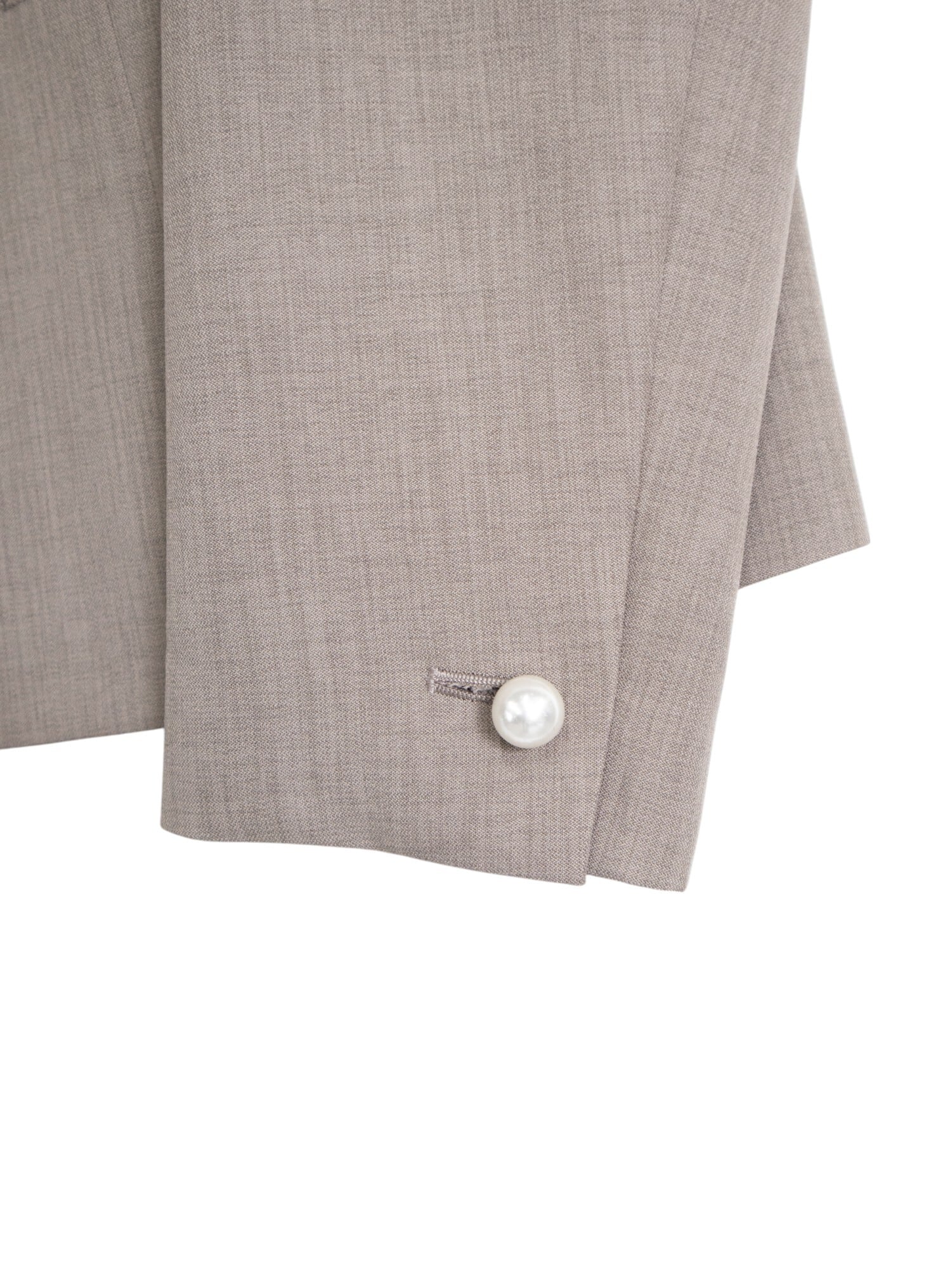 ソリッドなシルエットとメンズ規格レベルの高密度の打ち込みの生地が醸し出すマニッシュな雰囲気に、ころんとした大きめのパールボタンが上品な甘さをプラスします。