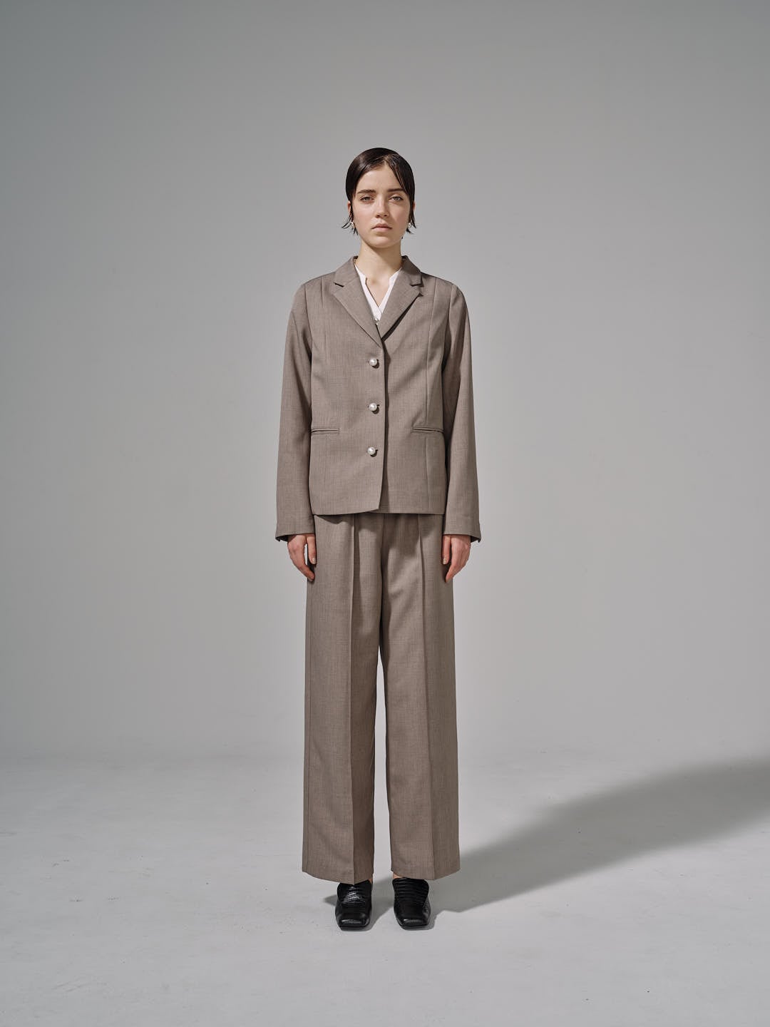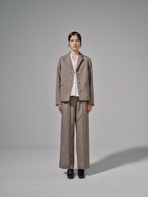 ポリエステル100%の梳毛調素材を使用し、しわになりにくく、ナチュラルな風合いが魅力です。