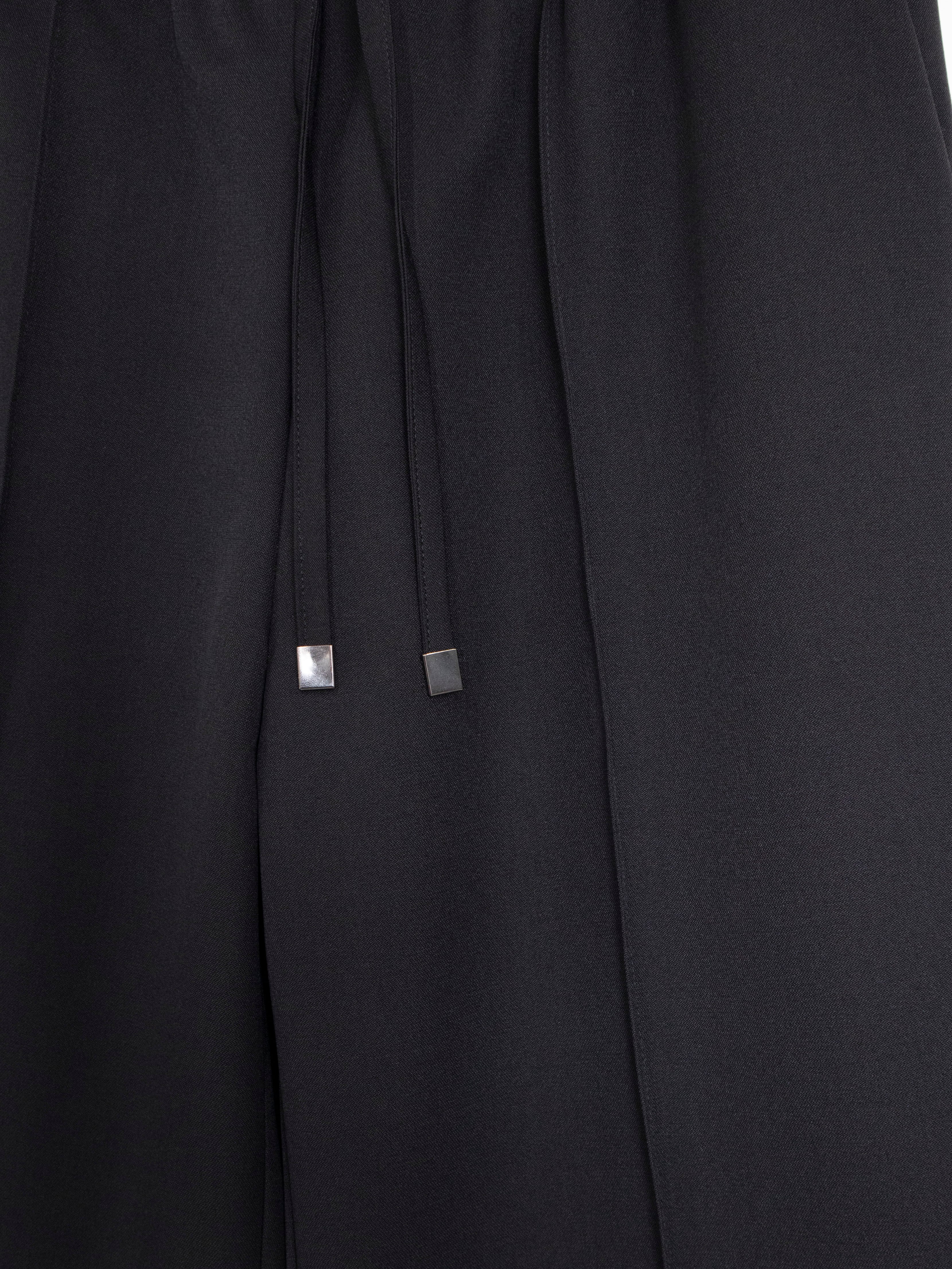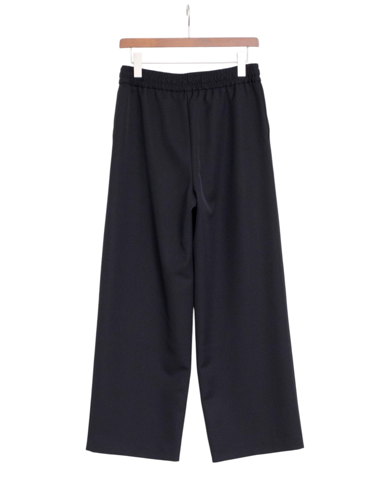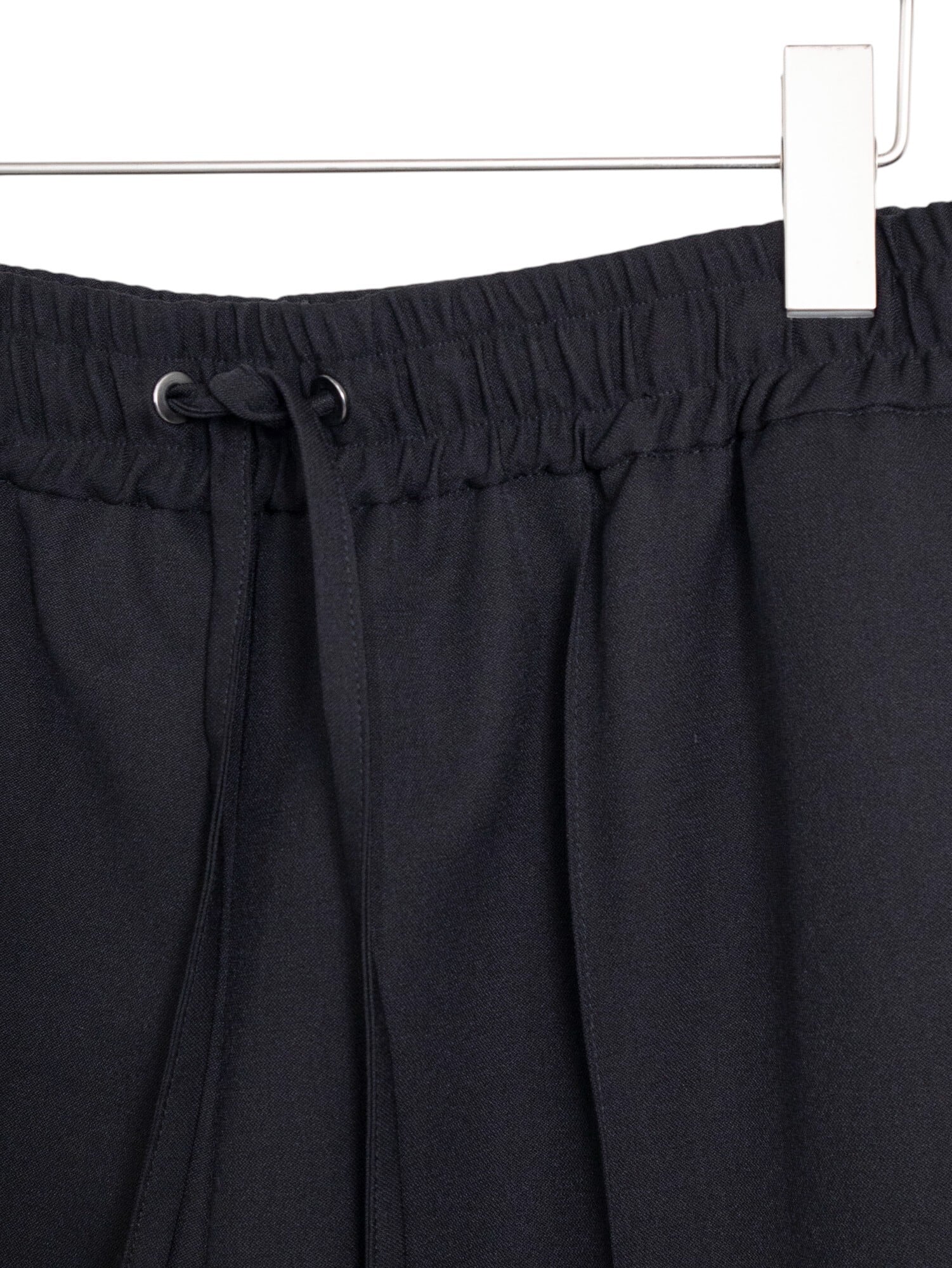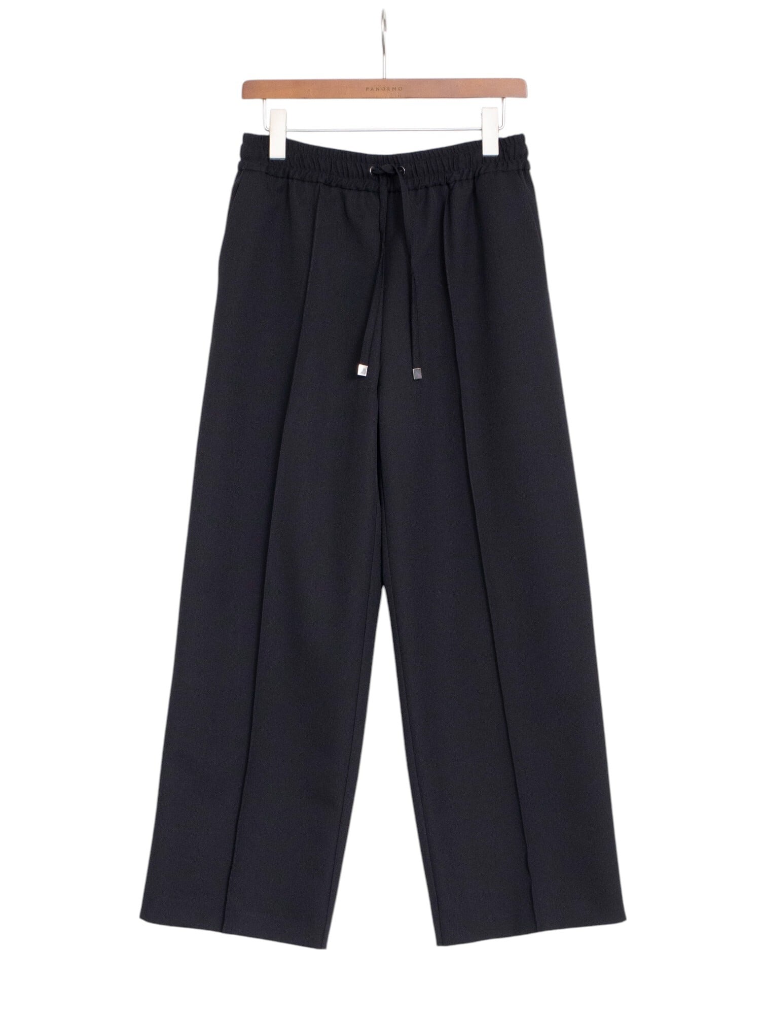 ゴムと紐でサイズ調節が可能なウエストデザインながら、センタープレスとクリースステッチが、美しいIラインを強調します。
