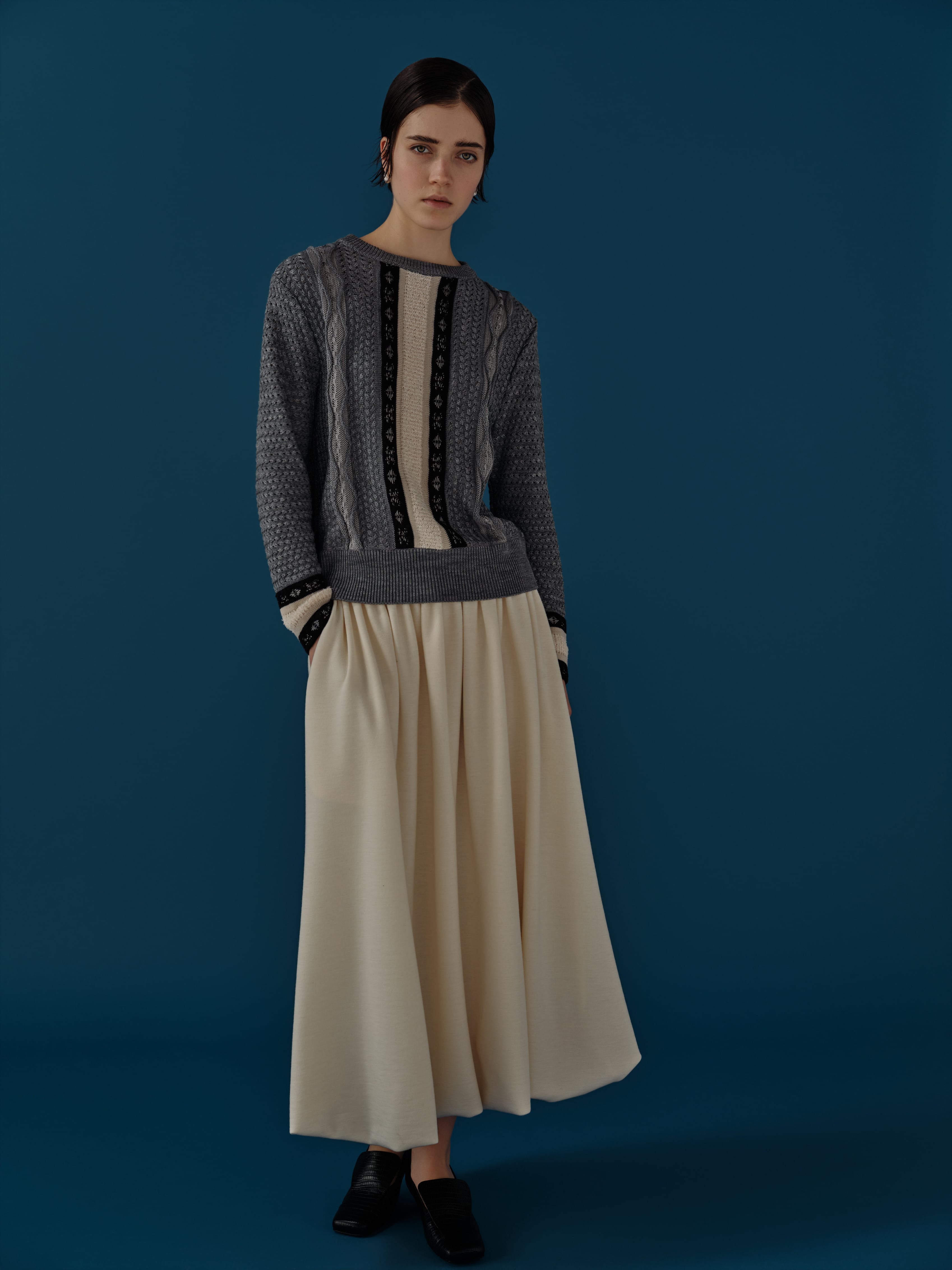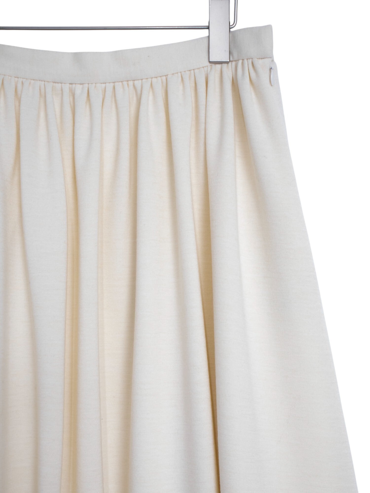 腰回りはすっきりと広がりすぎず、裾にかけて柔らかに膨らむデザインは、シンプルの中に少しの個性を感じさせます。