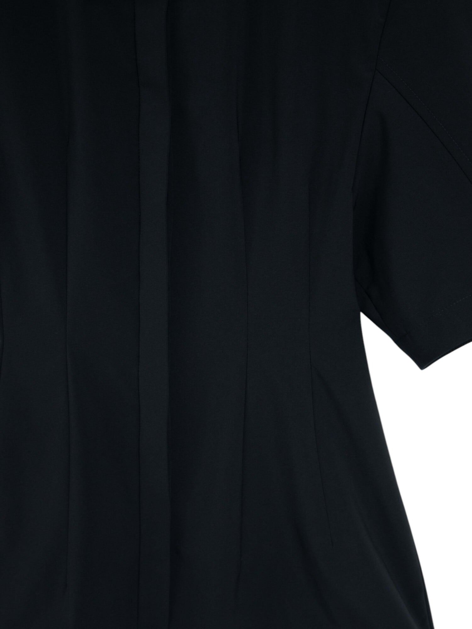 細やかなダーツが施されたウエストデザインは、バロック時代のドレスからインスピレーションを得たもの。クラシカルな要素を現代的に再解釈し、洗練された印象を与えます。