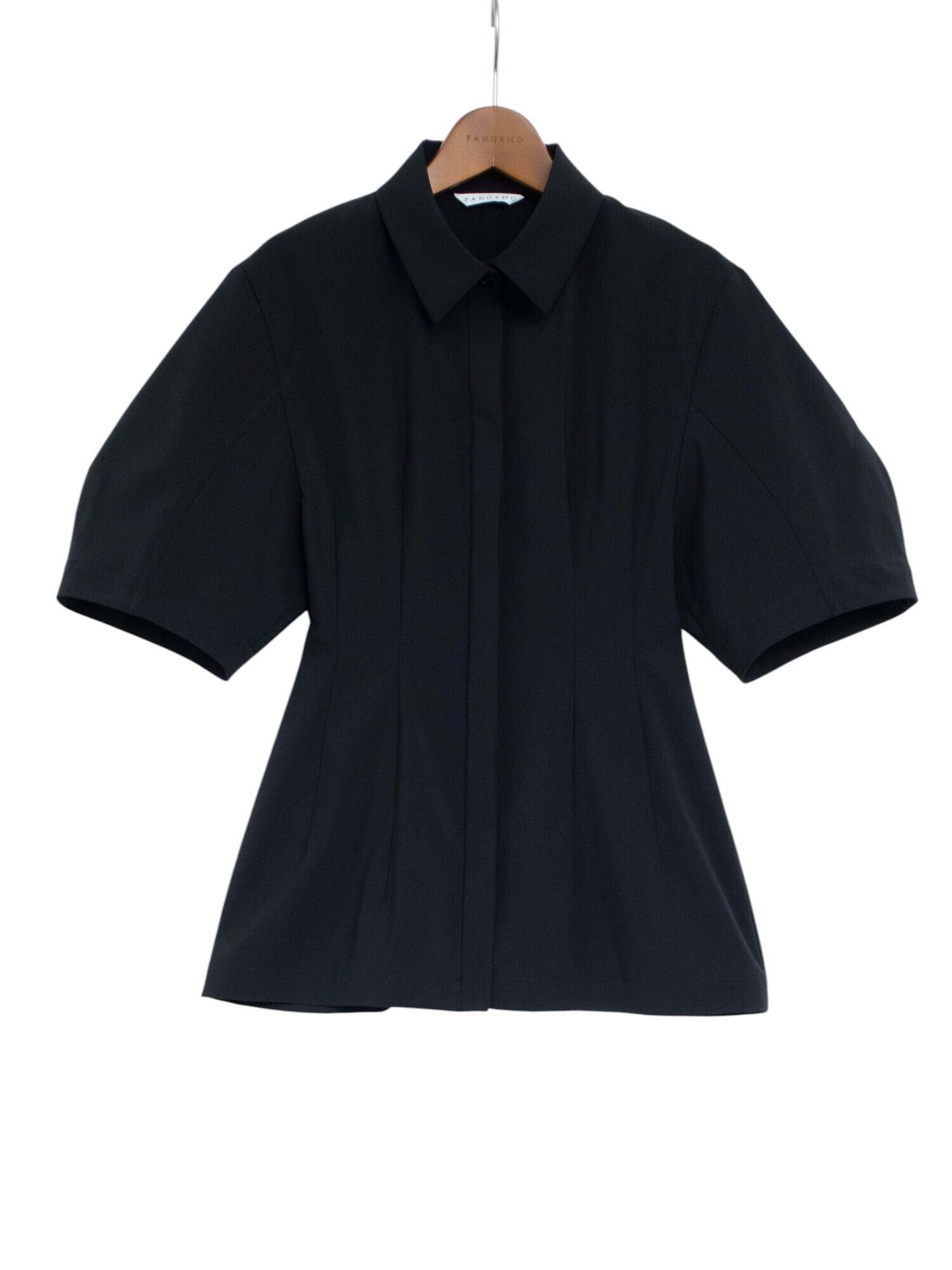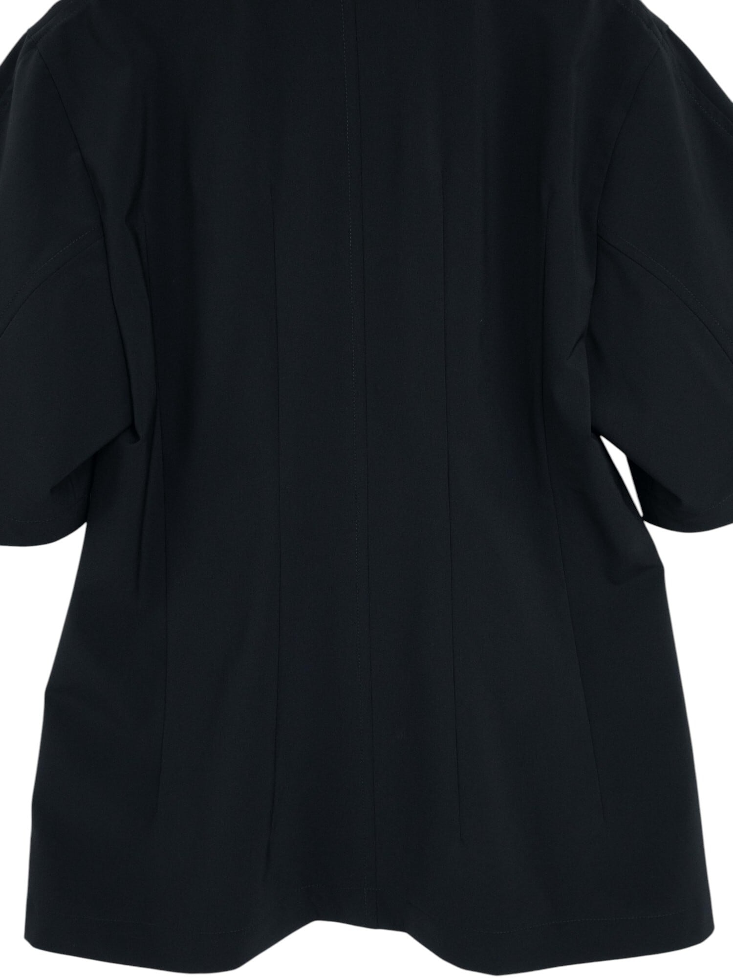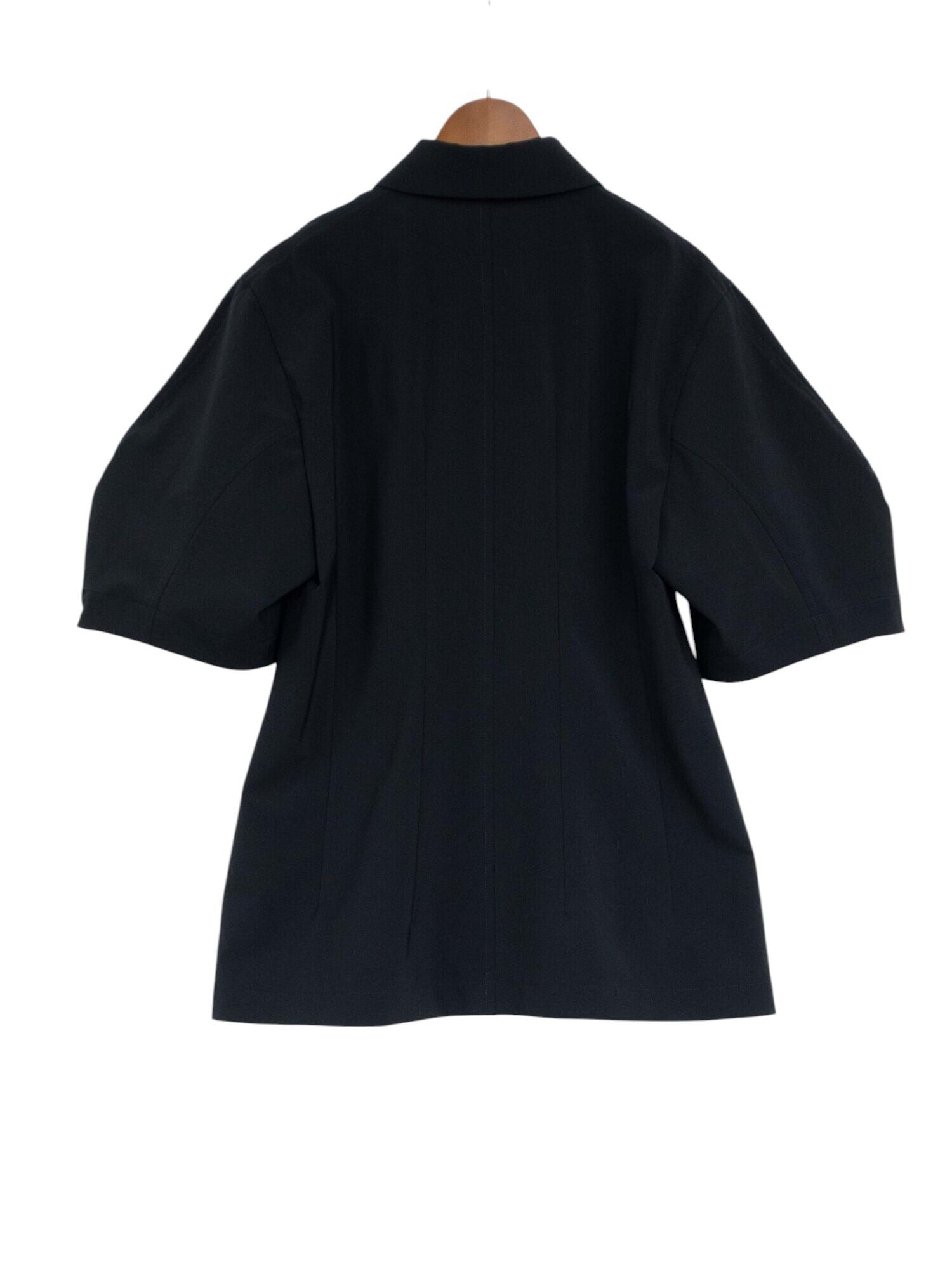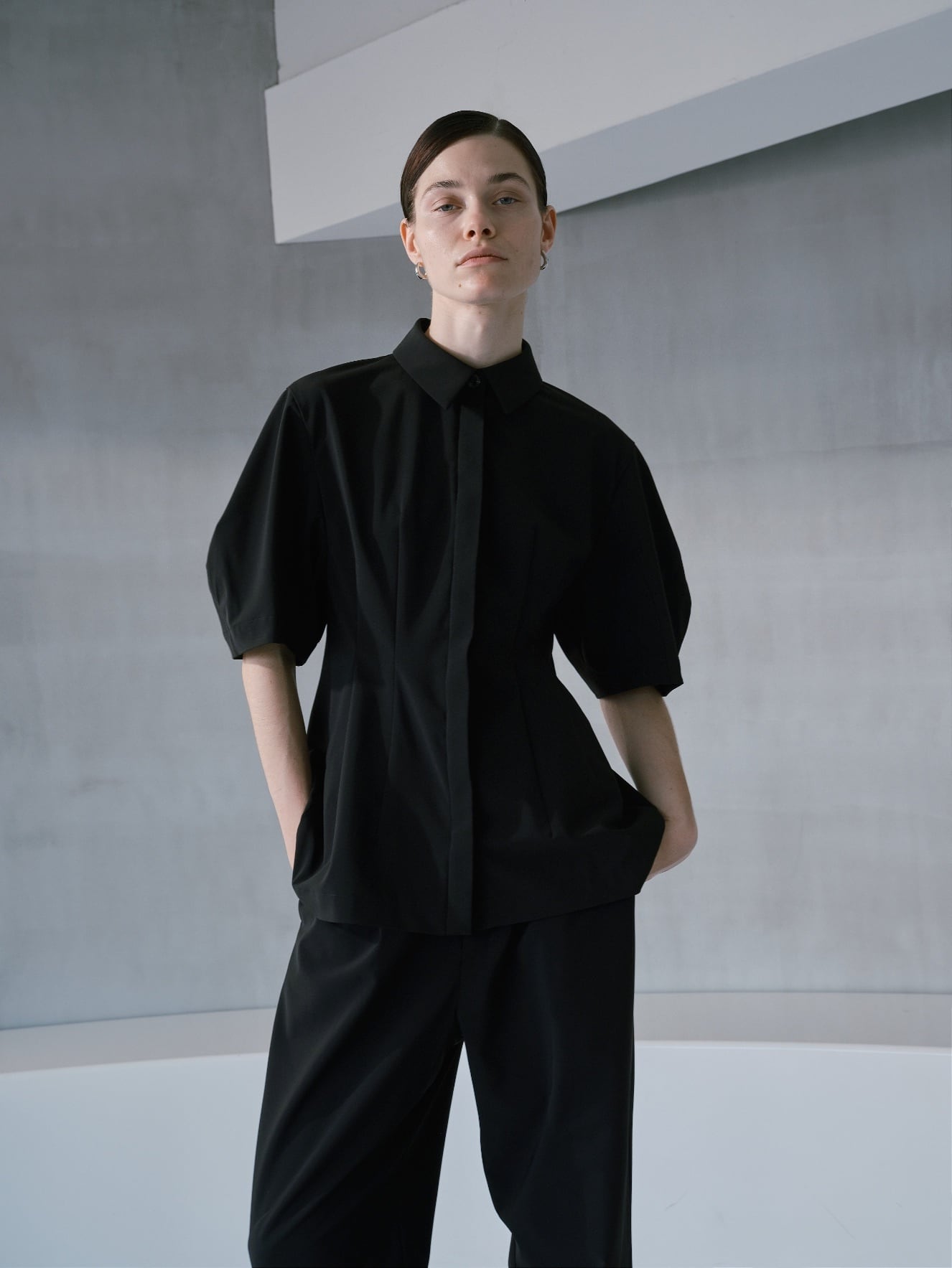 袖の構築的なシルエットデザインが、全体に立体感とモードなニュアンスをプラス。