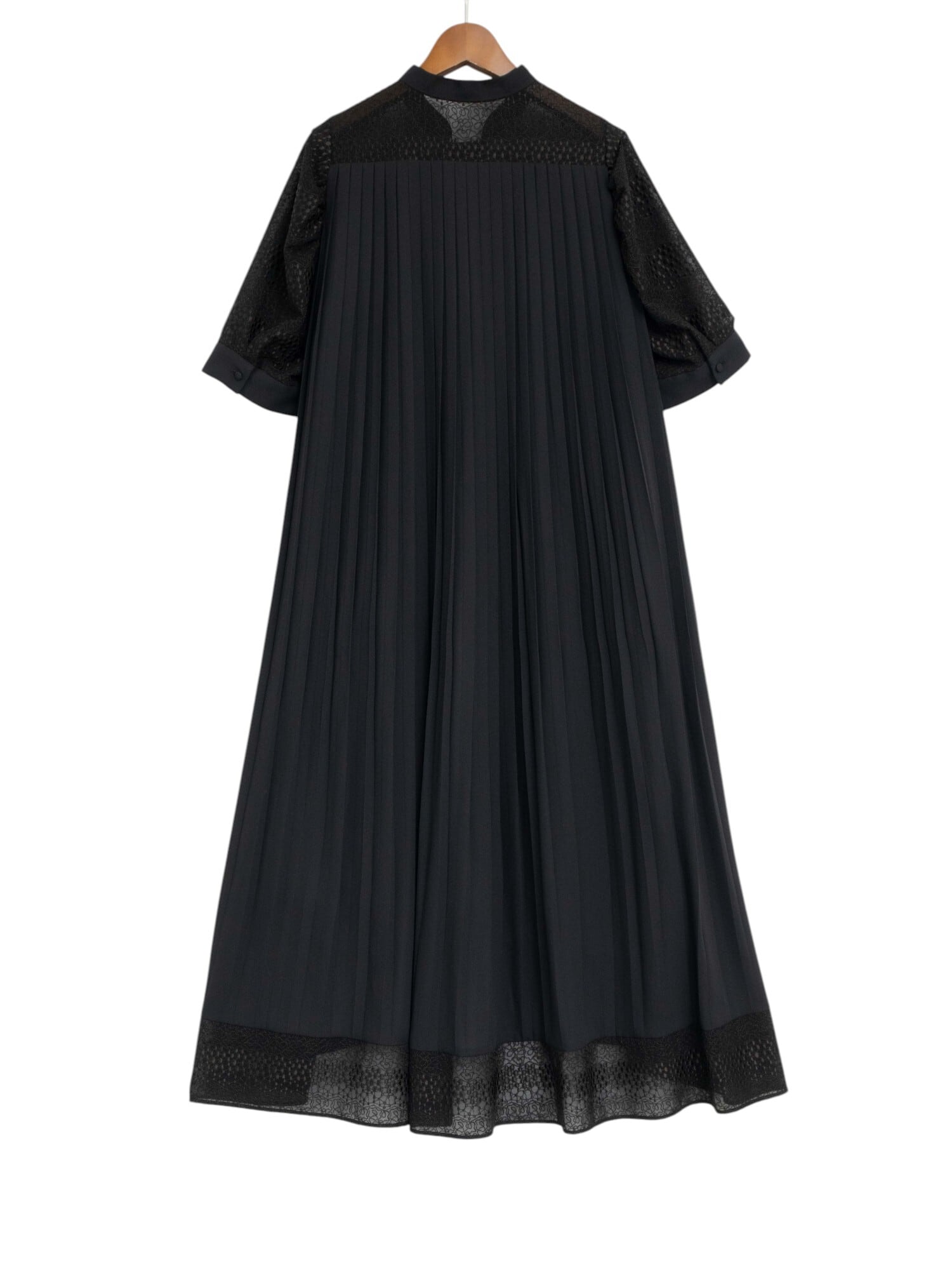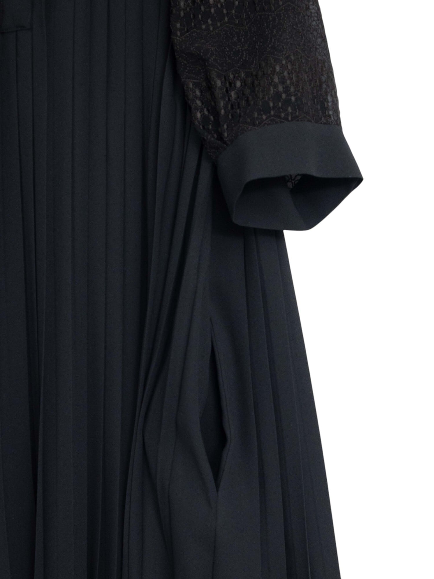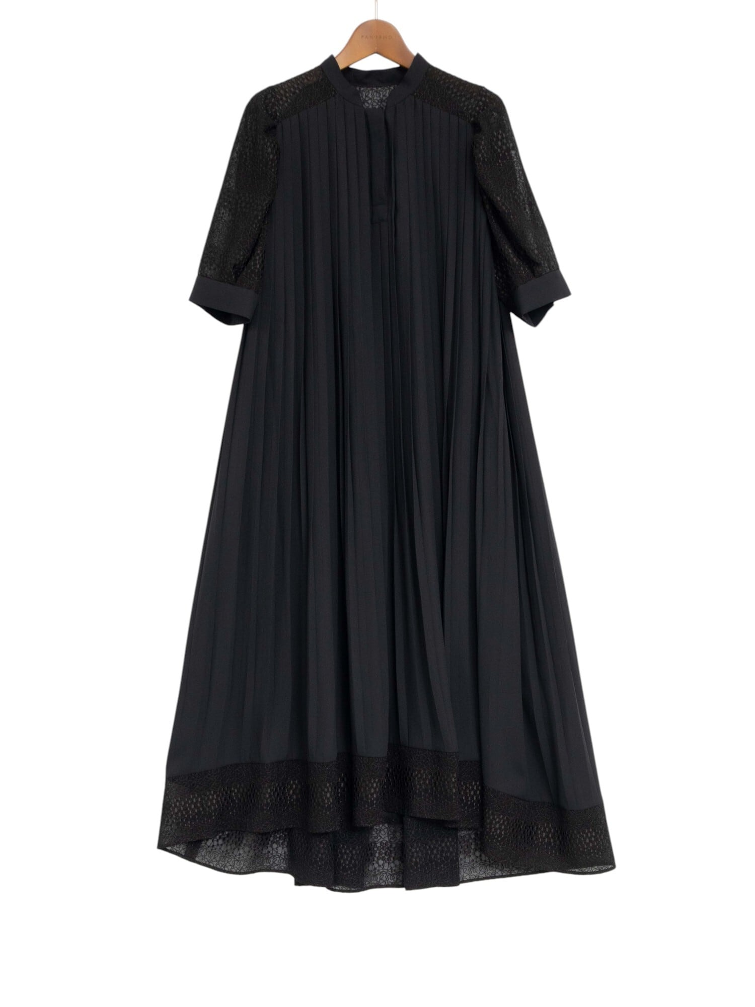身頃にはプリーツ加工を施し、揺れる繊細な表情が後ろ下がりのシルエットと相まって、360度佇まいを美しく見せるデザインです。