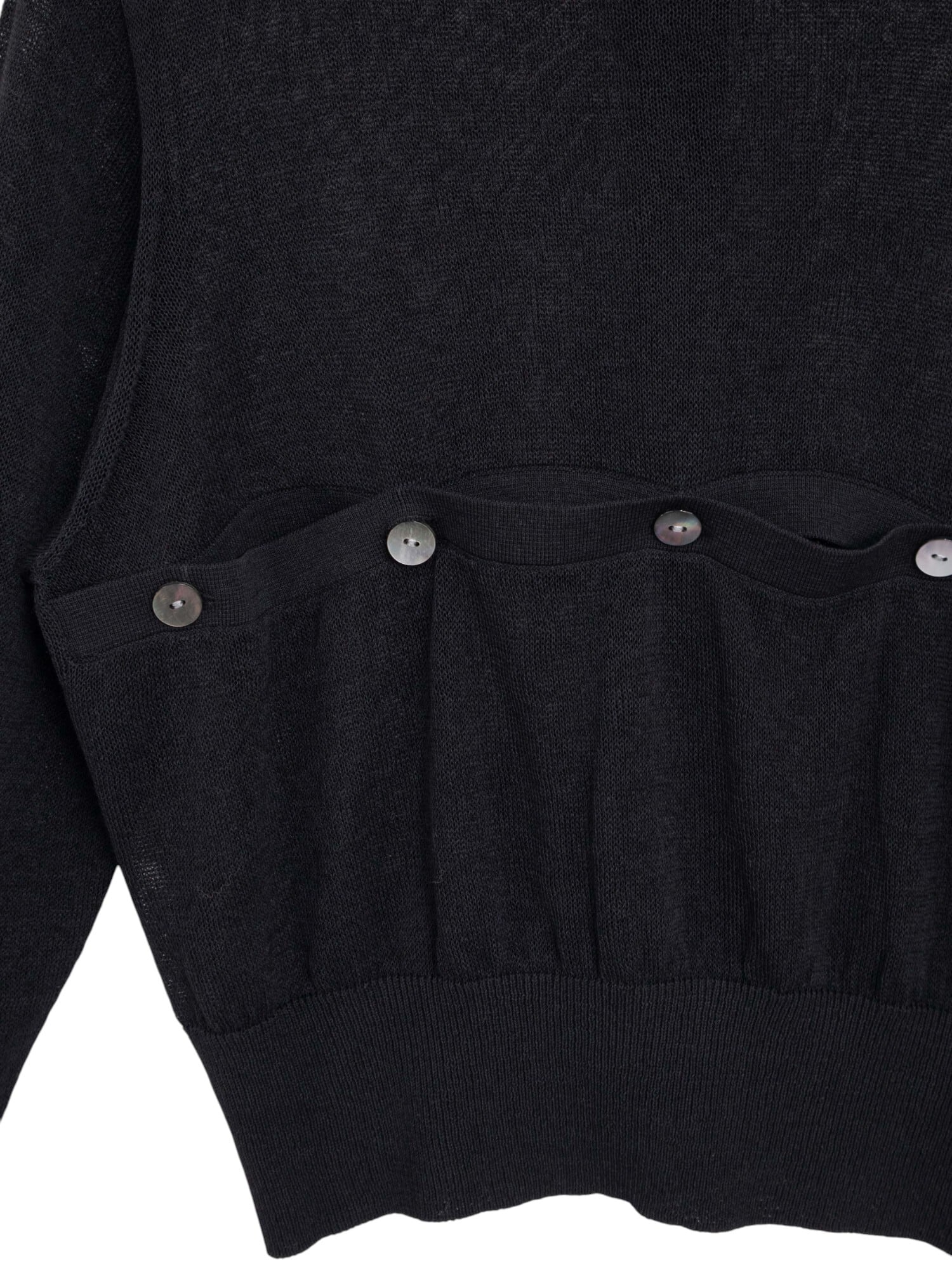 バックスタイルには5つのボタンをあしらい、開閉可能なデザインに。