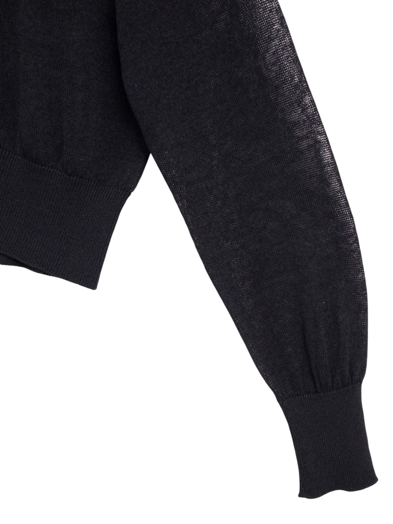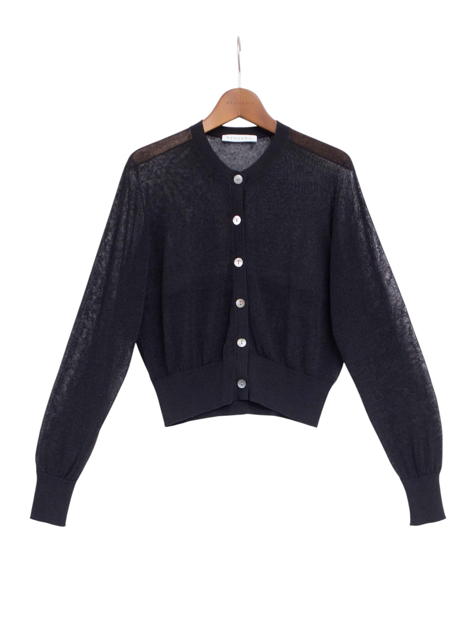 透け感を残し、少し甘めに編み上げたリネンとコットン、ナイロンの混紡素材のカーディガン。