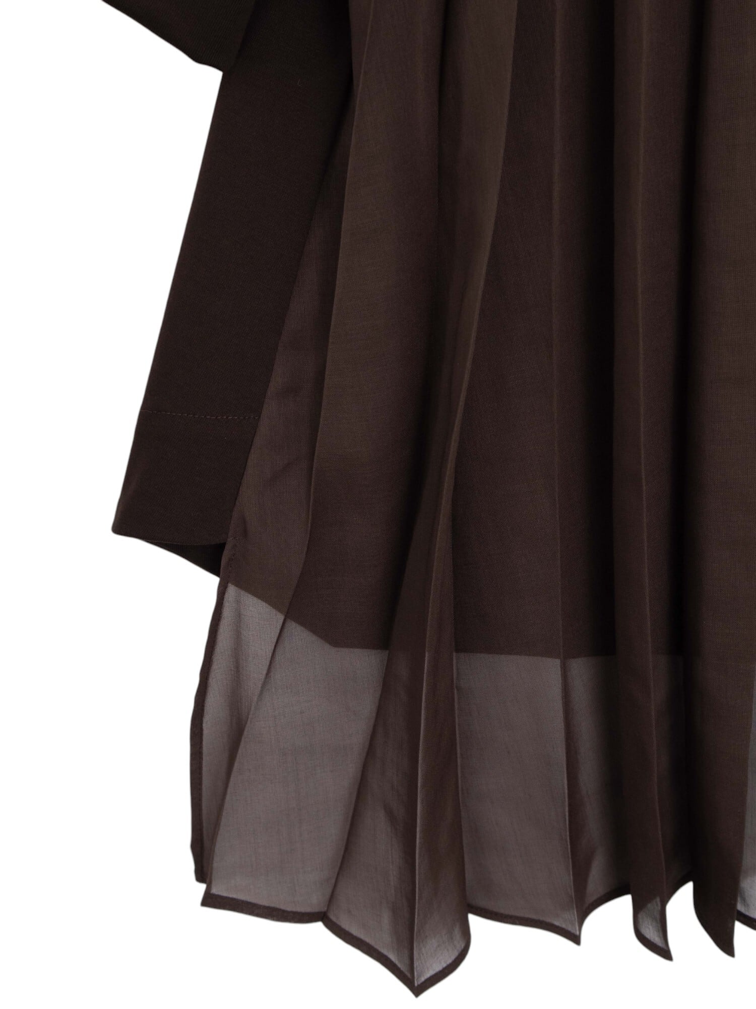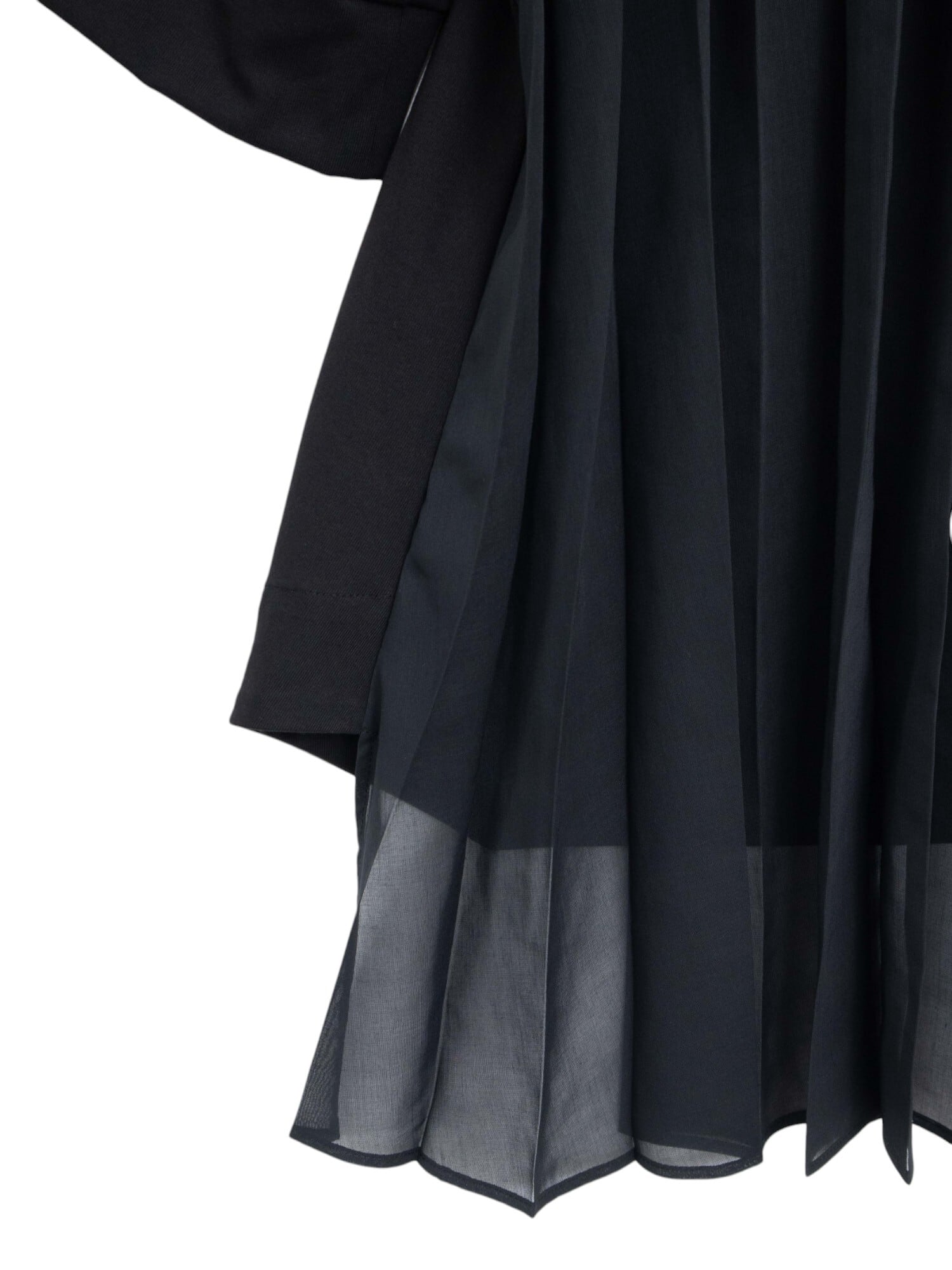 バックスタイルにはスパンボイル生地をドッキングさせ、アコーディングプリーツをかけることで透明感と立体感を演出。