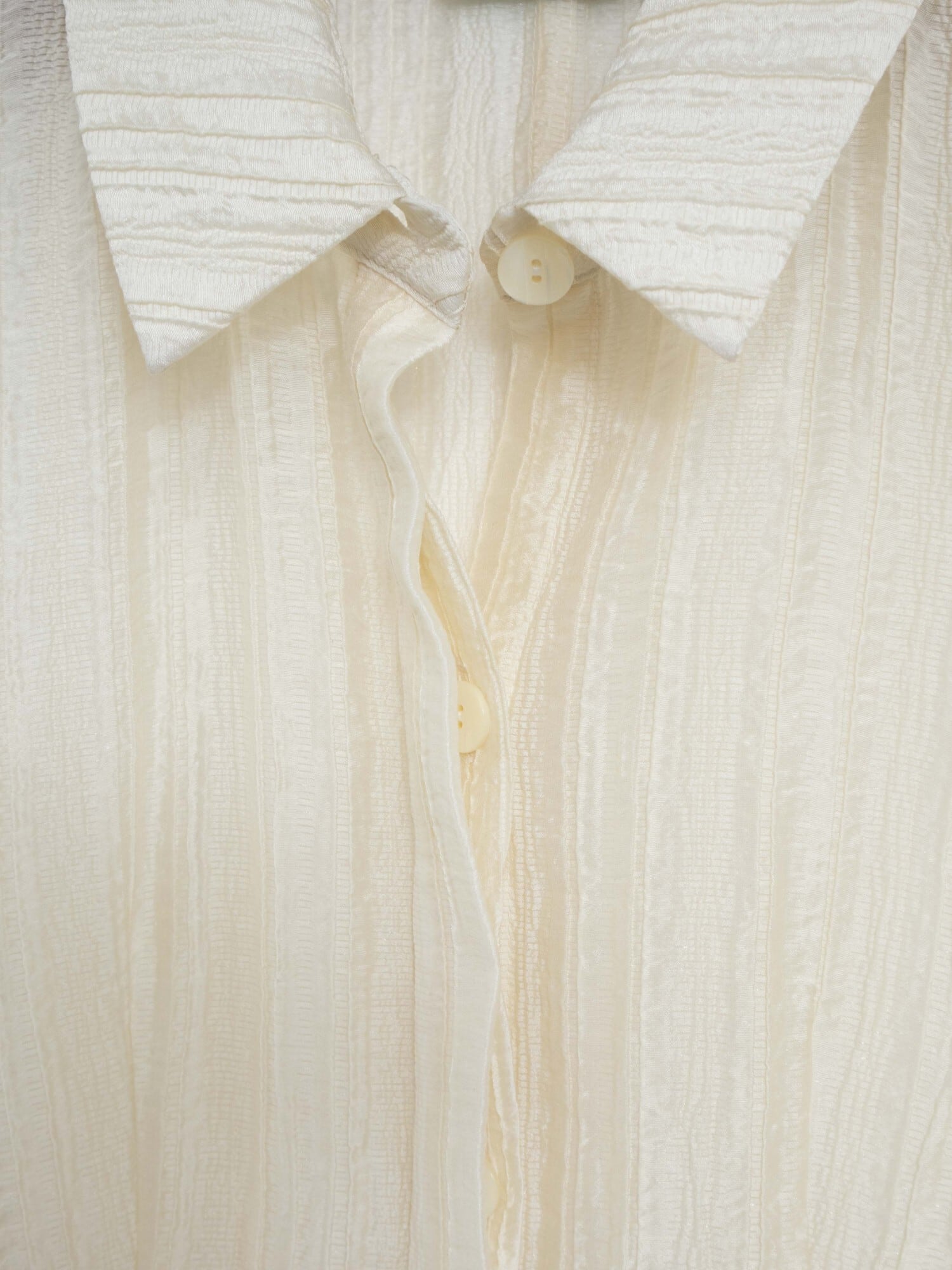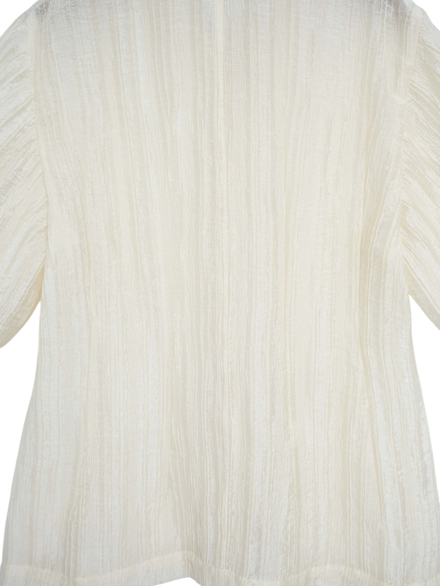 上品なシアー感と光沢、構築的なデザインが魅力のブラウス。