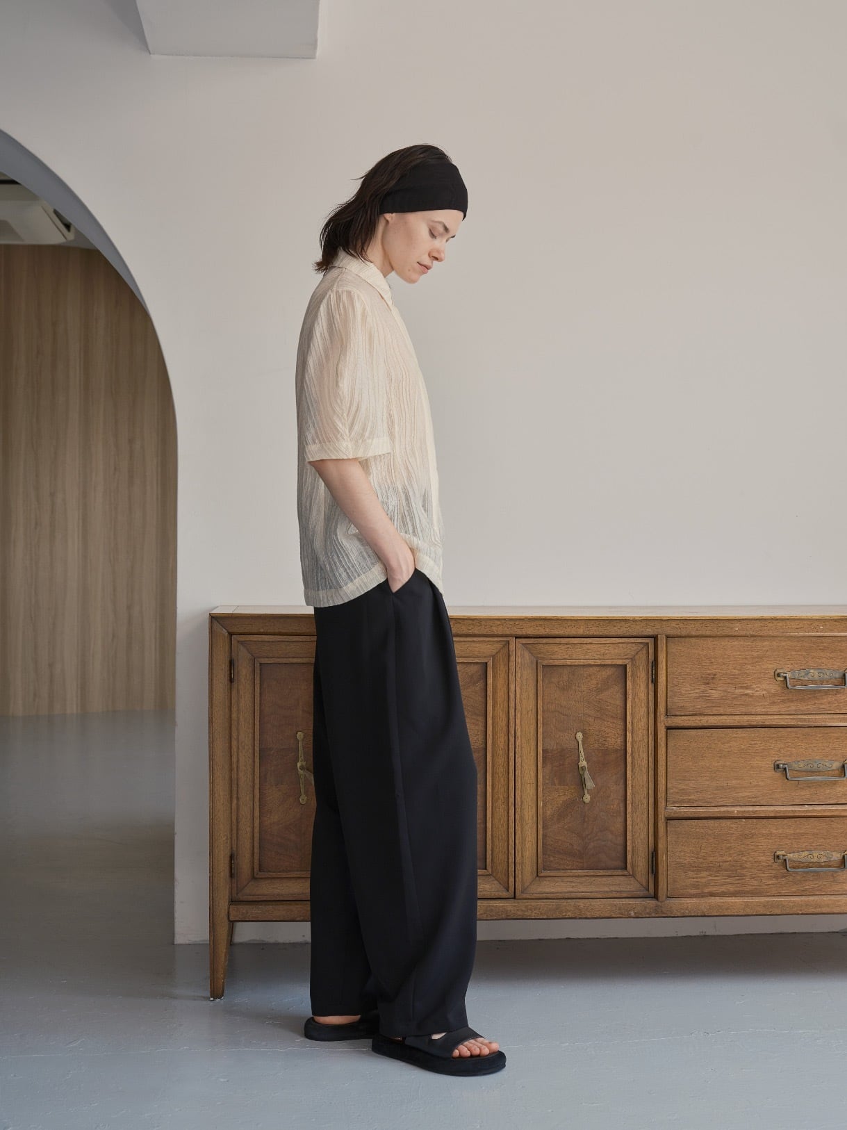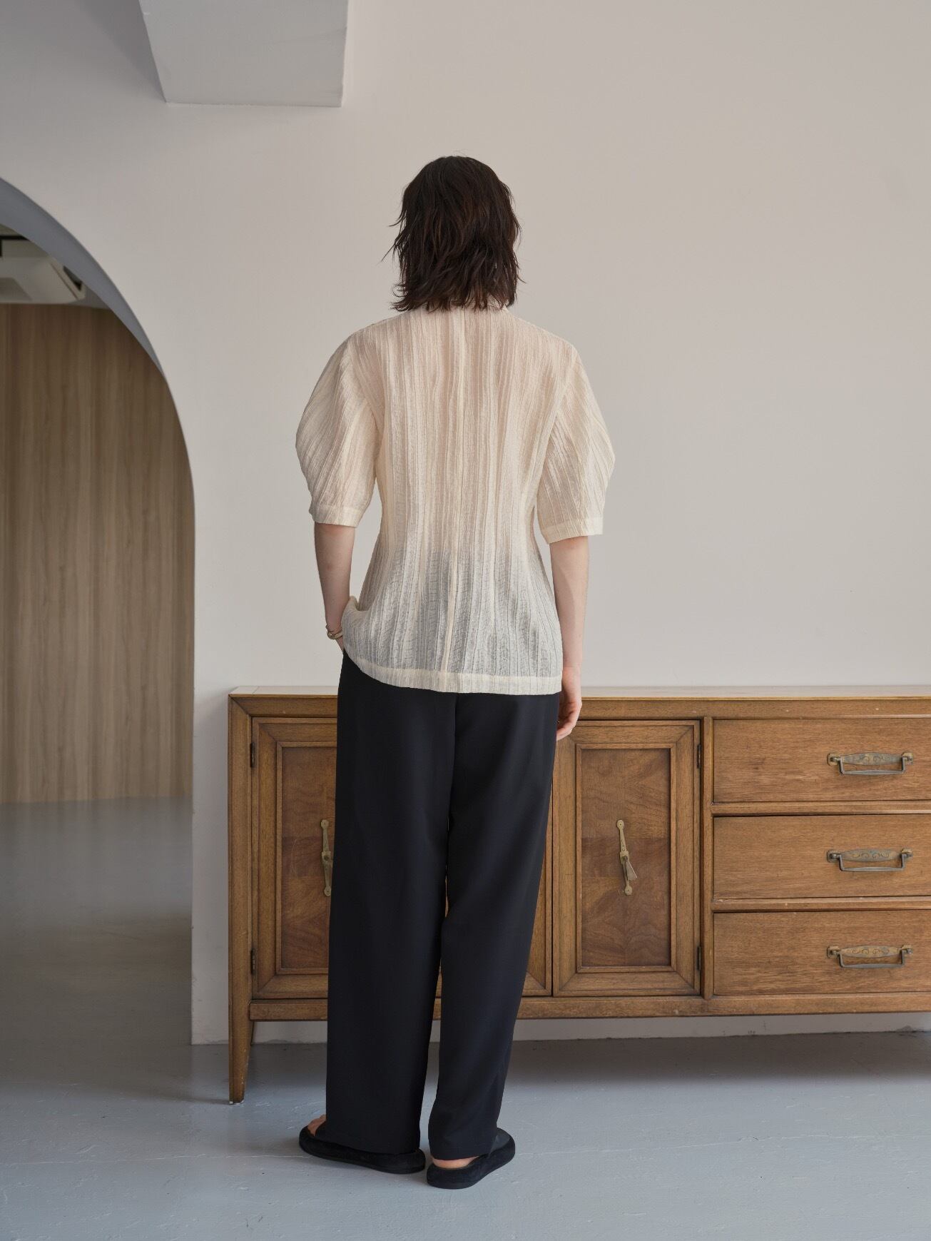 軽やかな素材感とディテールへのこだわりが、日常の装いに特別感を添えるブラウスです。