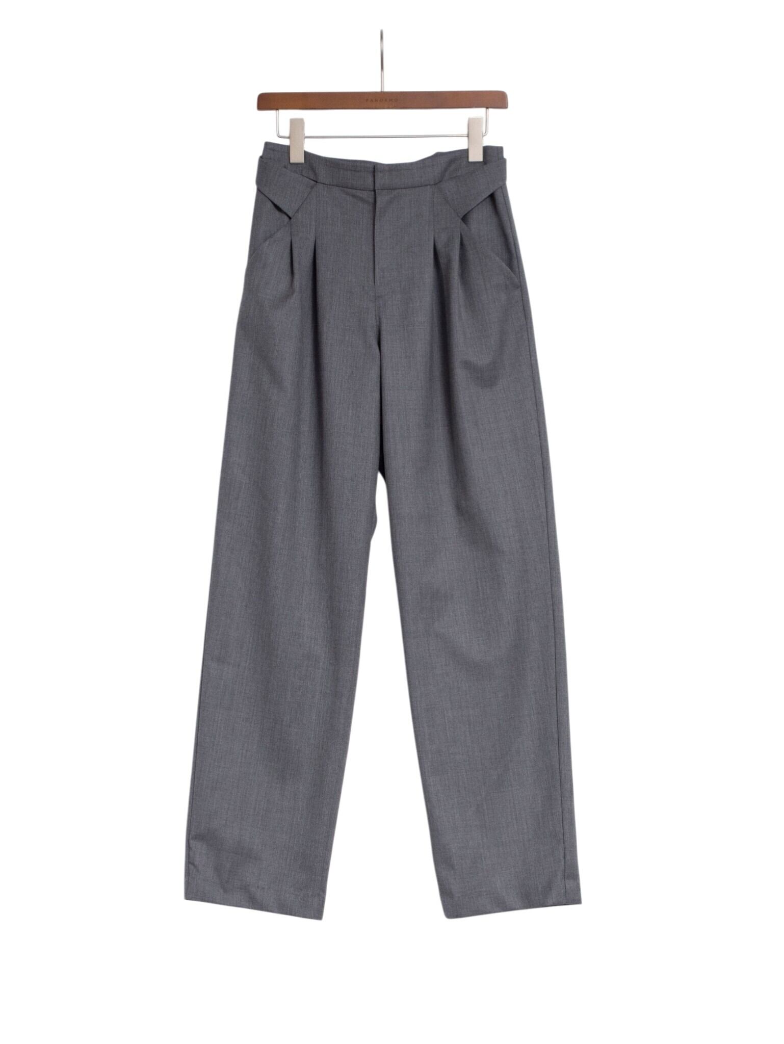 深く取った二本のタックが立体的なシルエットを生み出し、程よいゆとりを持ちながらもすっきりとしたストレートラインを描きます。