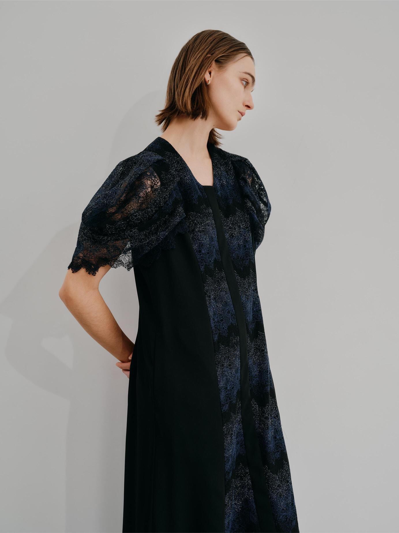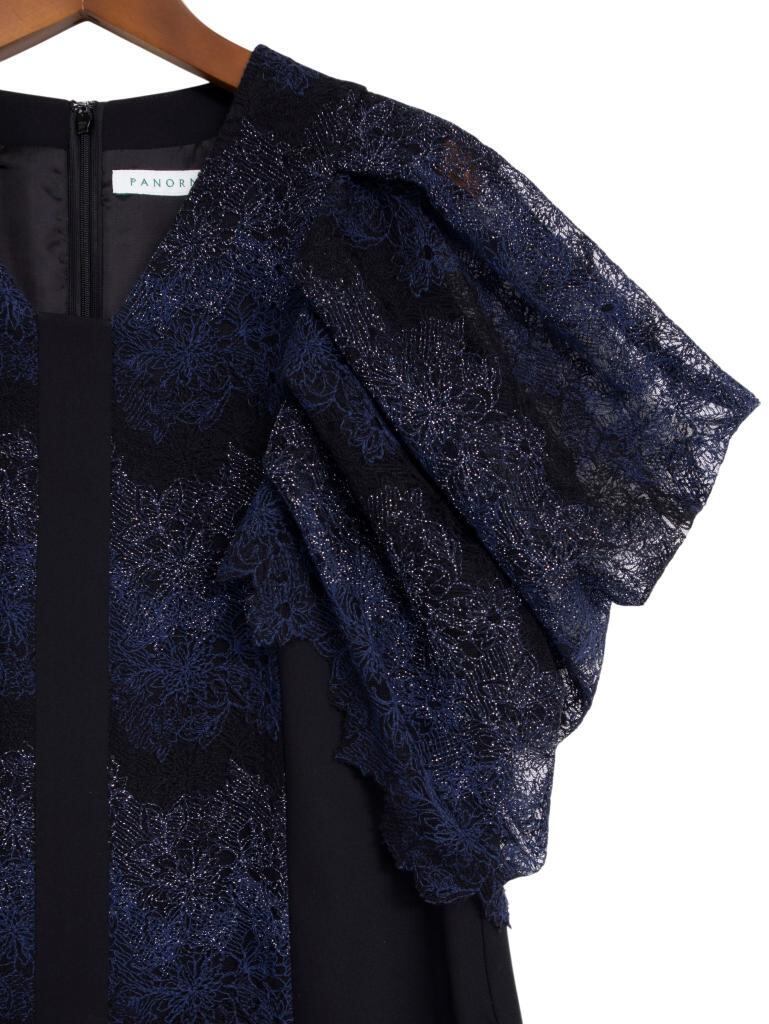 オリジナルレースはコットン糸のナチュラルな風合いにラメ糸の繊細な煌めきを重ね、グレー×ブラウン×ゴールド、ネイビー×ブラックブルーのニュアンスある2色展開。