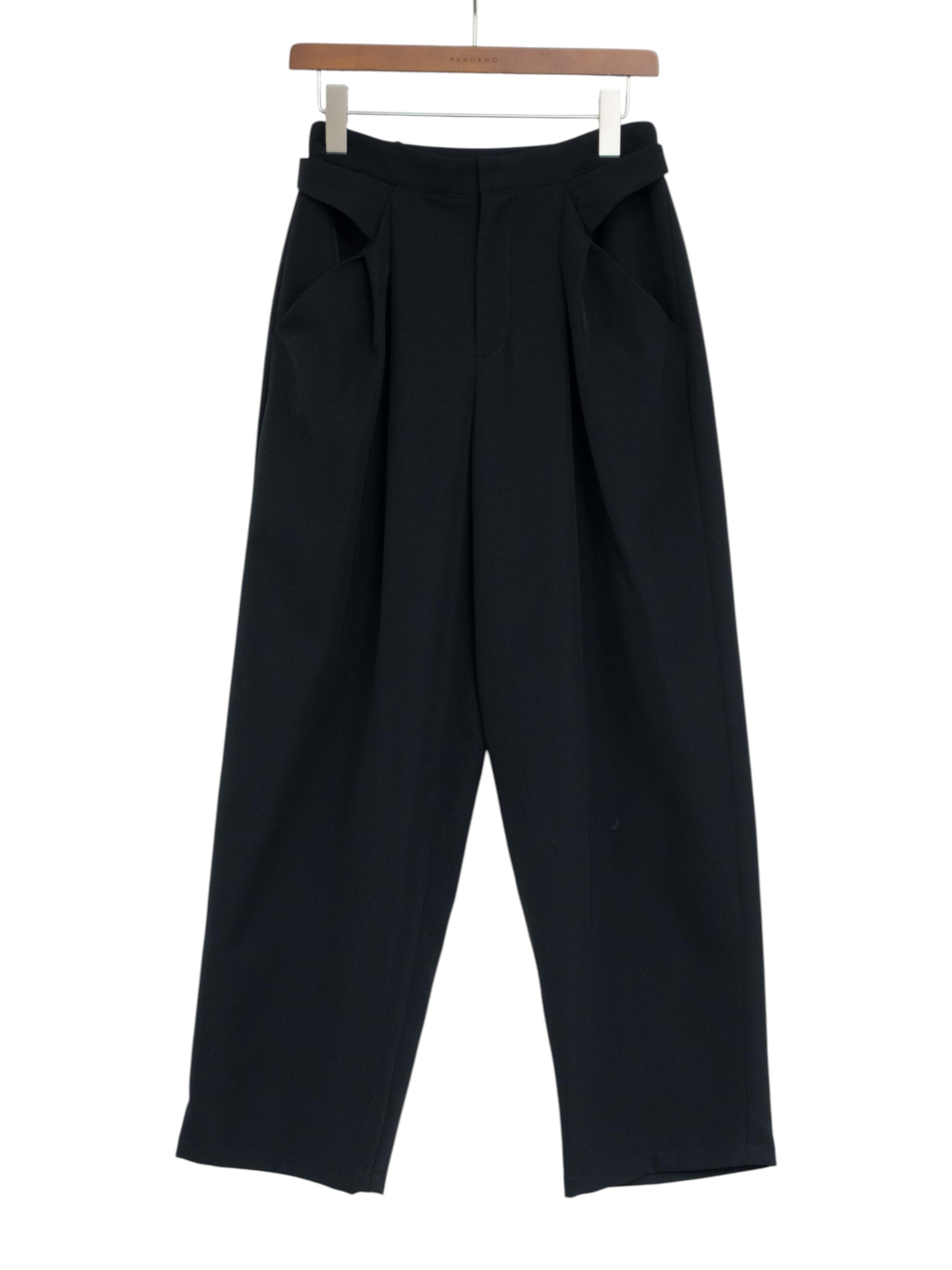 うに渡るベルトディテールが、構築的なニュアンスを添え、後ろ姿にも程よいアクセントを与えます。