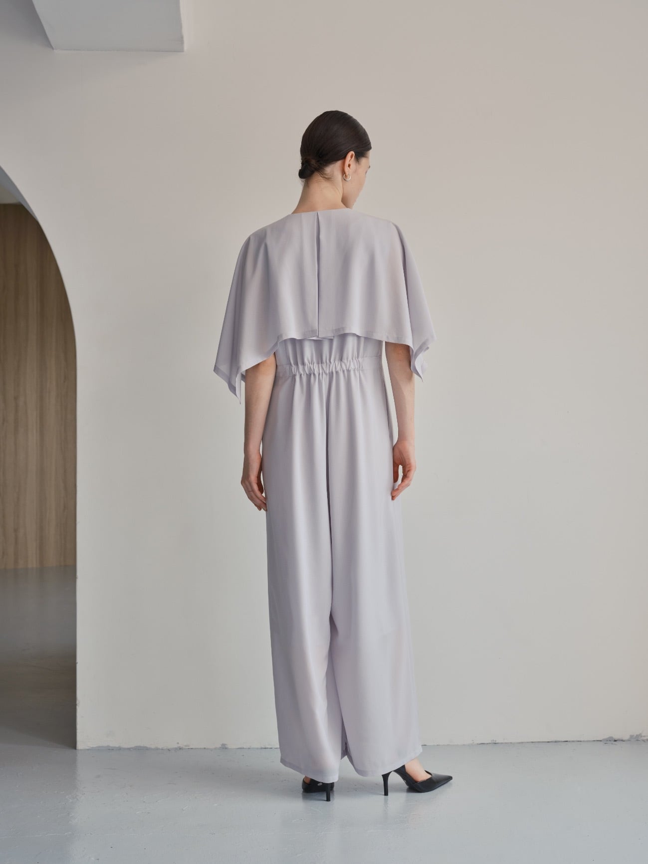 ドライタッチでドレープ性の高いアセテートオーガンジー素材を使用したジャンプスーツ。