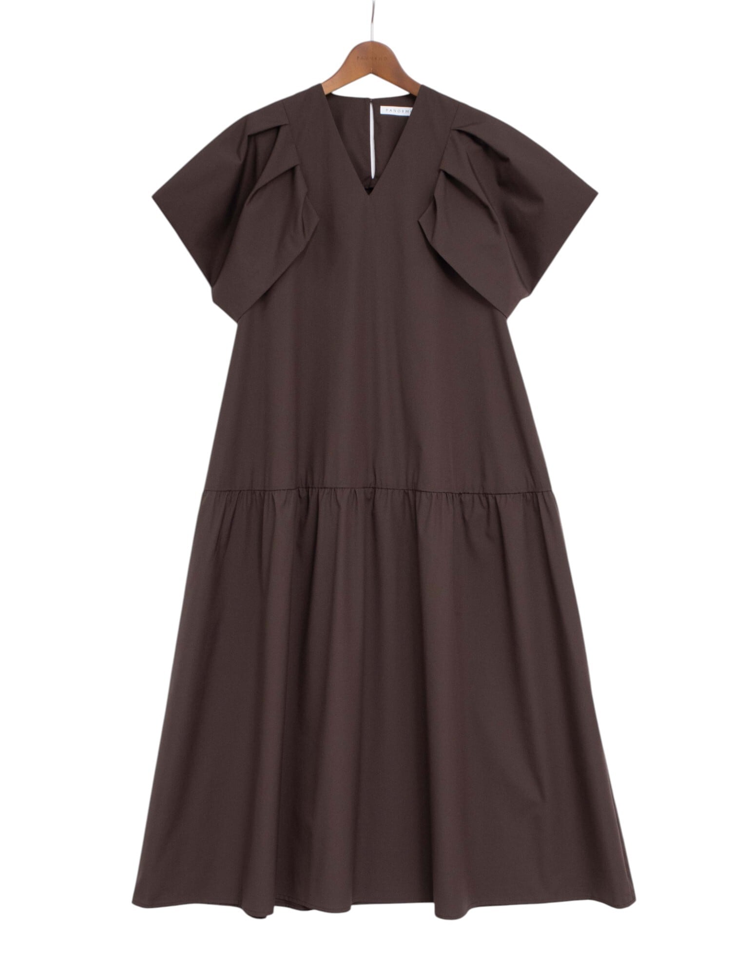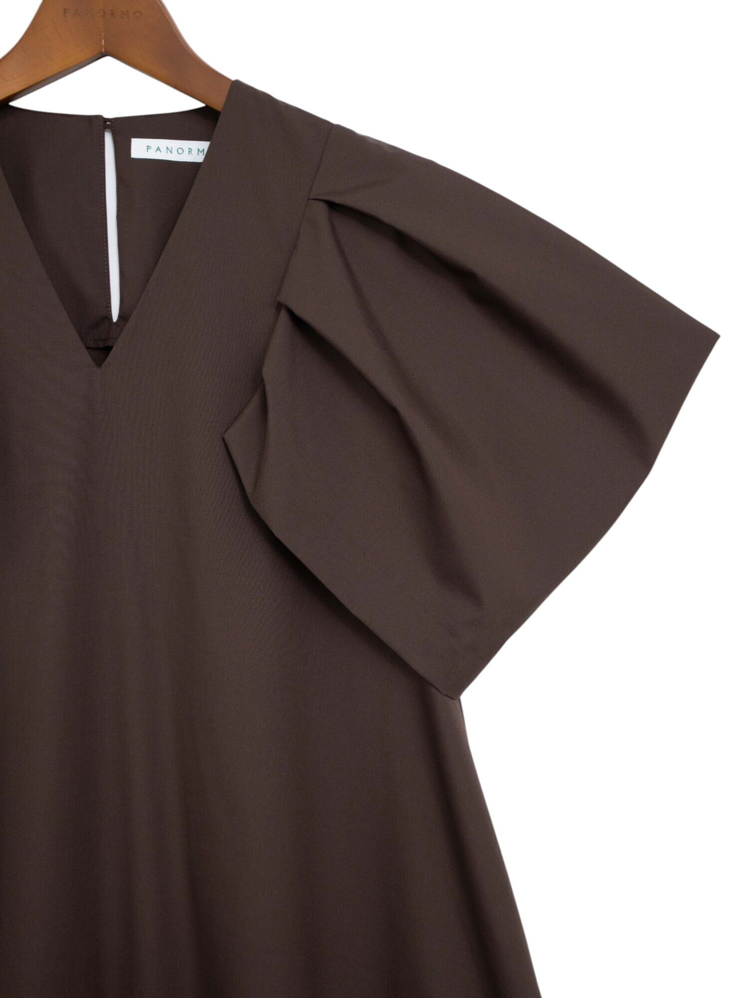 肩のタックデザインは内側から深く入れることで、肩を大きく見せず、エッジの効いたボリューム感を演出。
