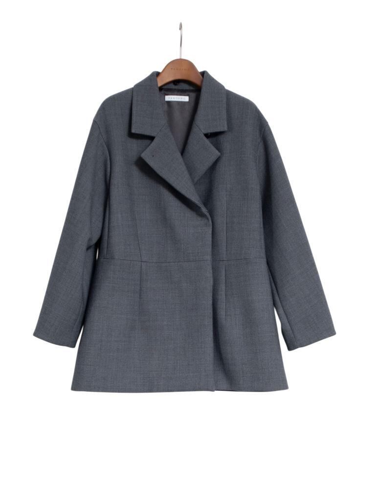 梳毛ならではのドライな質感と程よい張りを生かし、袖にやわらかな膨らみを持たせました。ウエストから腰にかけてはダーツや細やかなパターンで丁寧に調整し、構築的で美しいシルエットに仕上げています。